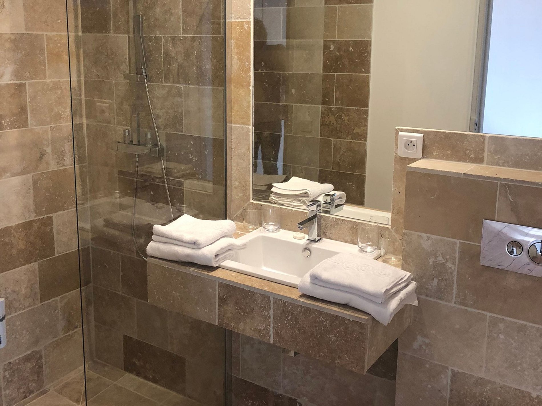 Les 16 suites chauffées, équipées de salles de bains en marbre ou en pierre naturelle, permettent d'accueillir 40 personnes dans un cadre raffiné.