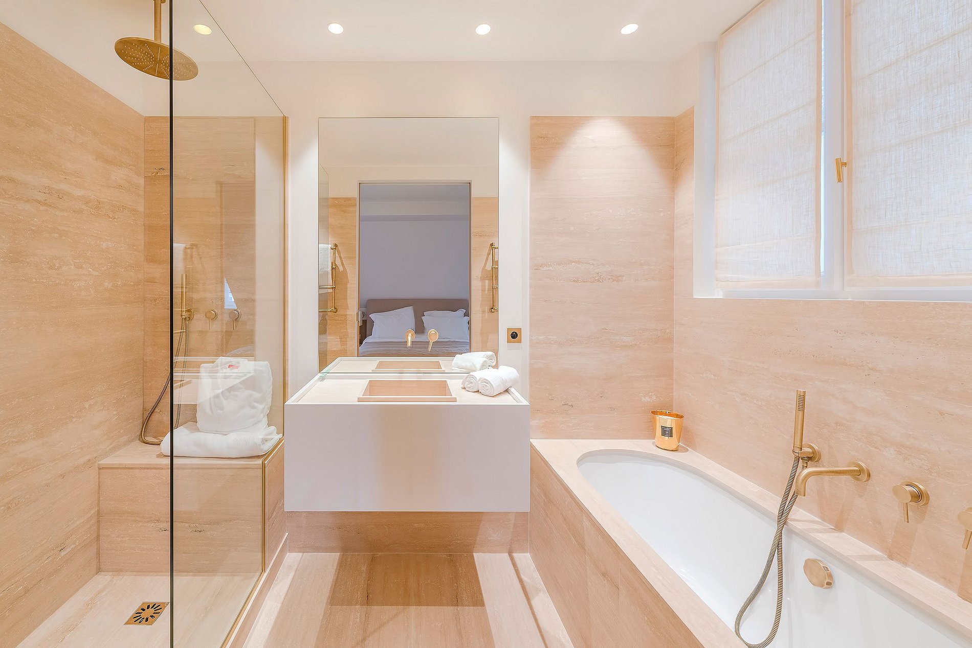 En montant l'escalier flottant privé vers le niveau supérieur se révèlent cinq magnifiques chambres en suite, chacune un sanctuaire privé conçu pour un confort et une intimité ultimes. Disposées avec soin sur ce deuxième étage serein, elles disposent de fenêtres du sol au plafond qui inondent les pièces de lumière naturelle et encadrent le paysage urbain envoûtant au-delà. Chaque chambre est entièrement équipée d'une climatisation de pointe pour un confort toute l'année, assurant un havre frais et tranquille même pendant les étés parisiens les plus chauds. Les salles de bains en suite arborent des équipements haut de gamme, incluant des douches de pluie, des baignoires profondes et des sols chauffants, tous finis en tons neutres doux qui renforcent le sentiment de calme et de raffinement.