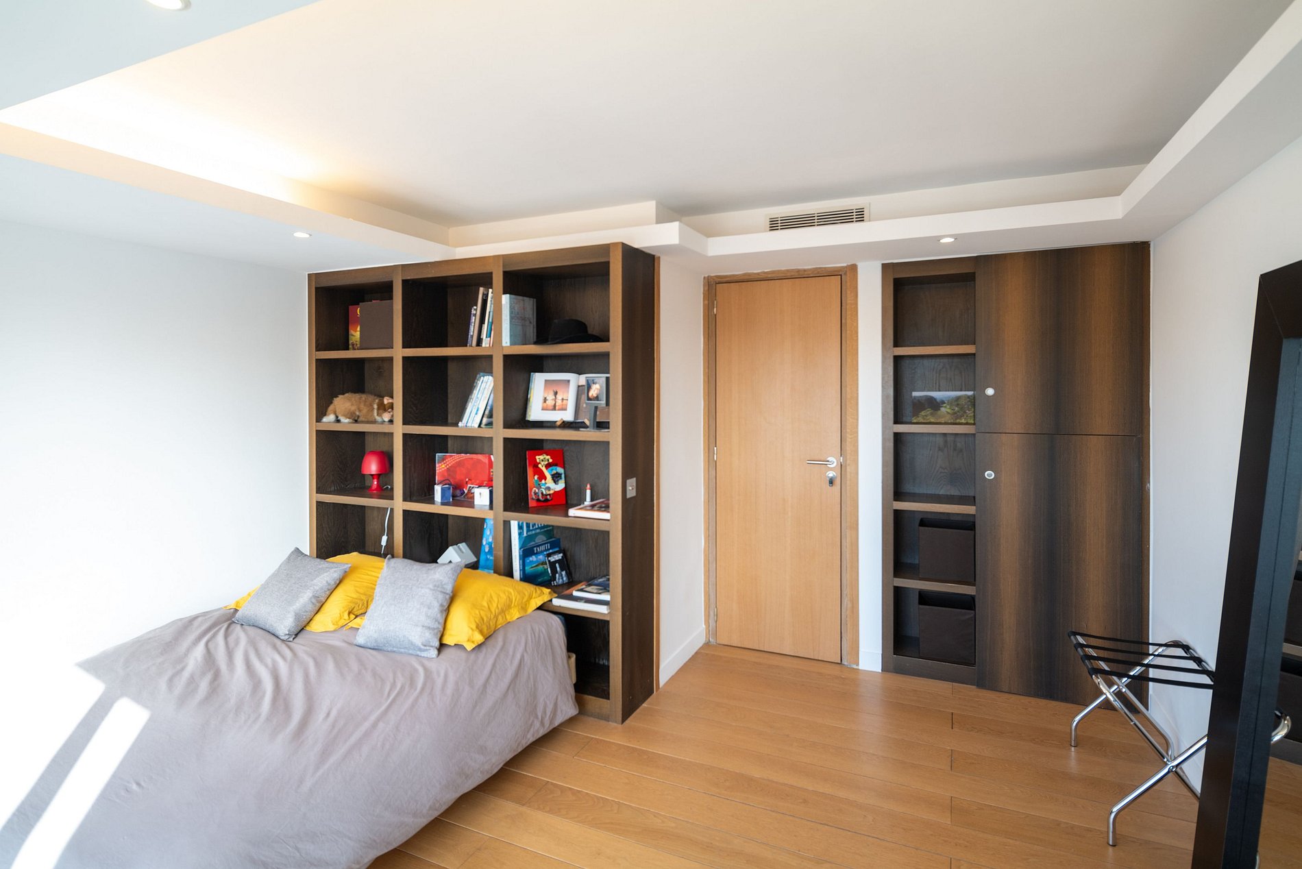 Perché au dernier étage et au 32ème étage d'une tour sécurisée, gardée 24/7 par un portier vigilant, votre terrasse privée en plein air offre un havre de paix dans le ciel de la ville. Le triplex, avec ses larges parois en verre et son design minimaliste, baigne dans la lumière naturelle, offrant une vue panoramique et ininterrompue qui promet de vous couper le souffle.