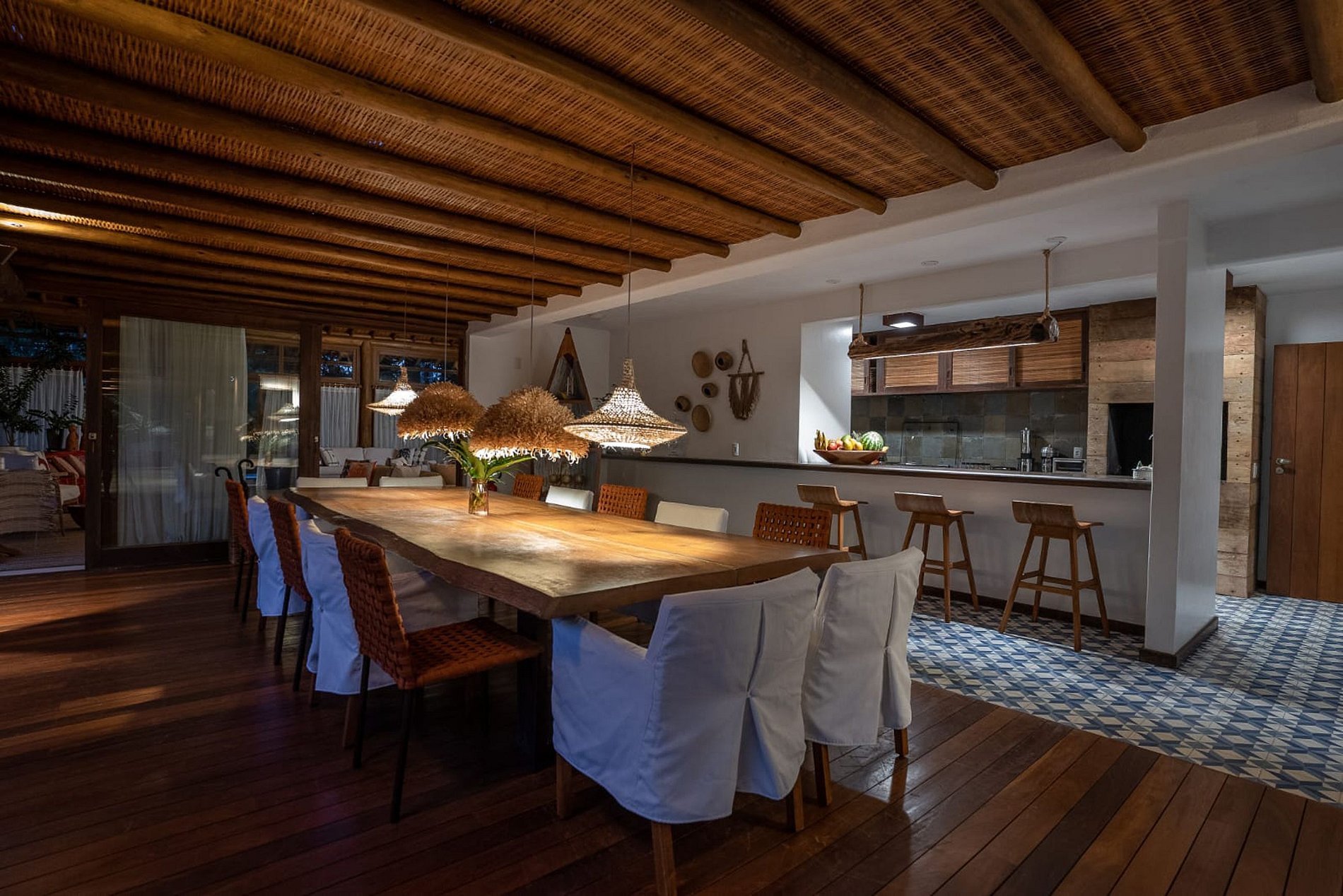 Située dans une copropriété de luxe, la résidence se trouve à seulement 500 mètres de l'emblématique Quadrado de Trancoso, alliant intimité et accès pratique aux charmes locaux. La maison principale est équipée de deux cuisines modernes, d'un bar élégant et d'espaces de vie et sociaux confortables, dont une Smart TV de 80 pouces.