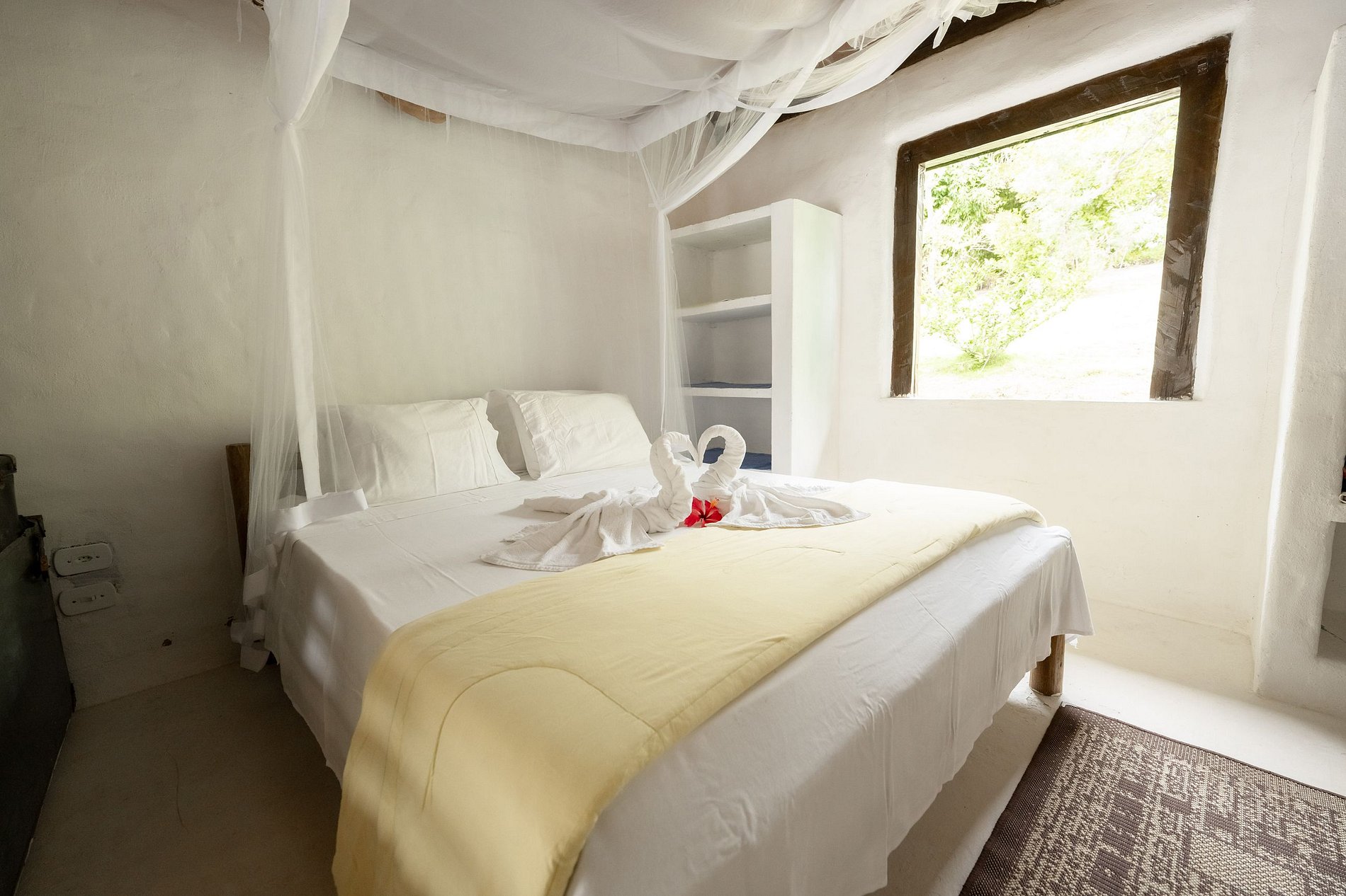 La propriété dispose de 4 chambres dont 2 suites et 2 chambres avec un lit double et l'autre avec 3 lits simples. Toutes les chambres ouvrent de grandes fenêtres en bois sur le balcon, avec de délicieux canapés et hamacs devant chaque suite. Accueille très bien jusqu'à 8 personnes.