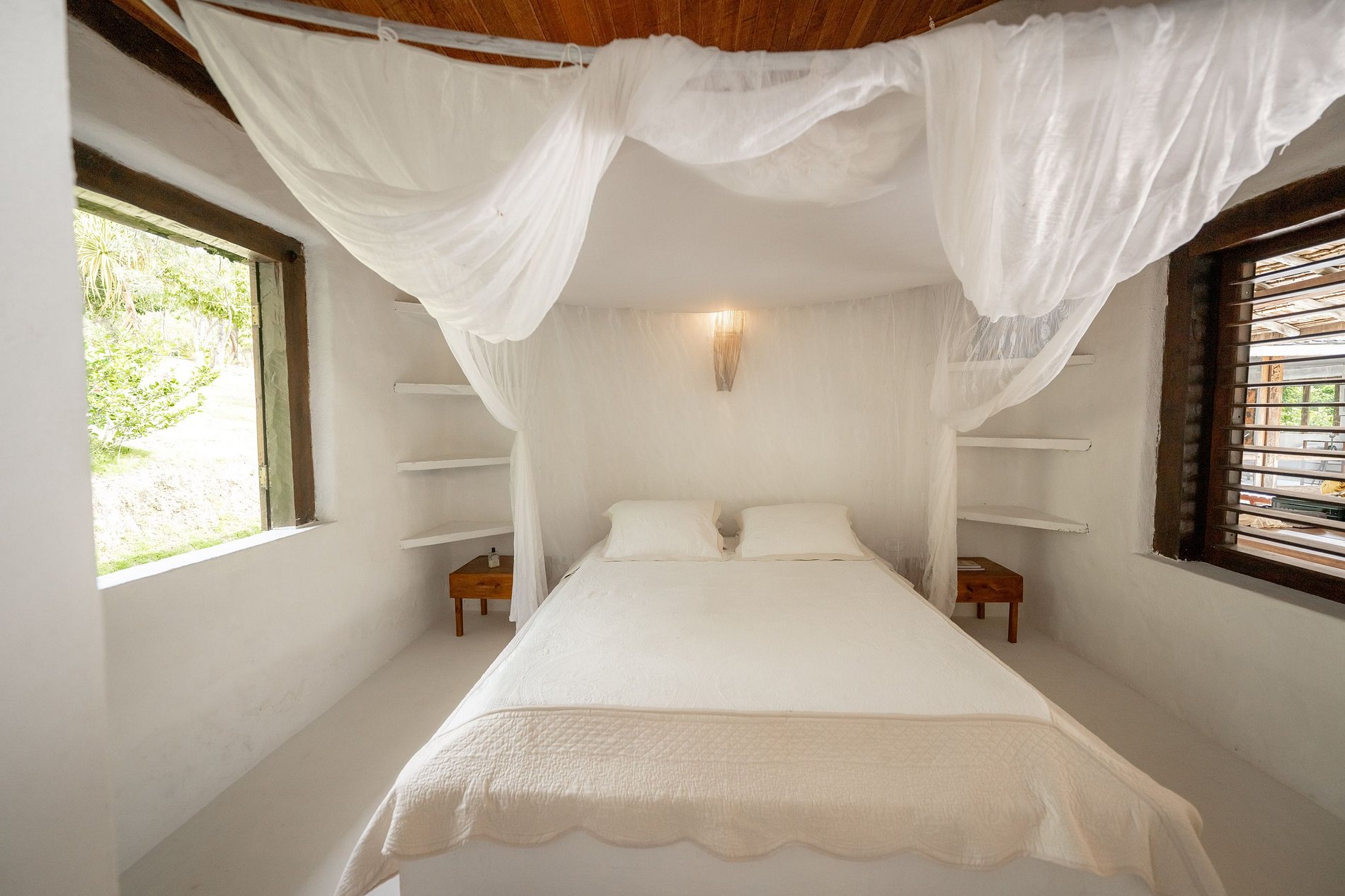 La propriété dispose de 4 chambres dont 2 suites et 2 chambres avec un lit double et l'autre avec 3 lits simples. Toutes les chambres ouvrent de grandes fenêtres en bois sur le balcon, avec de délicieux canapés et hamacs devant chaque suite. Accueille très bien jusqu'à 8 personnes.