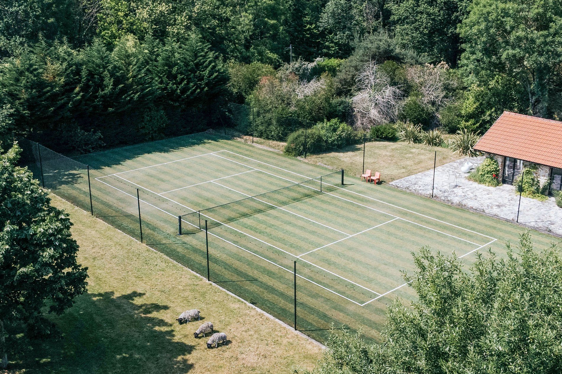 Au cœur de la propriété se trouvent un court de tennis ultramoderne, une piscine immaculée et une salle de sport entièrement équipée, chacun conçu pour se fondre harmonieusement avec la beauté naturelle des environs. Ces installations répondent à une gamme d'activités de loisirs, assurant aux invités de profiter d'un style de vie actif au milieu de la tranquillité de la campagne.