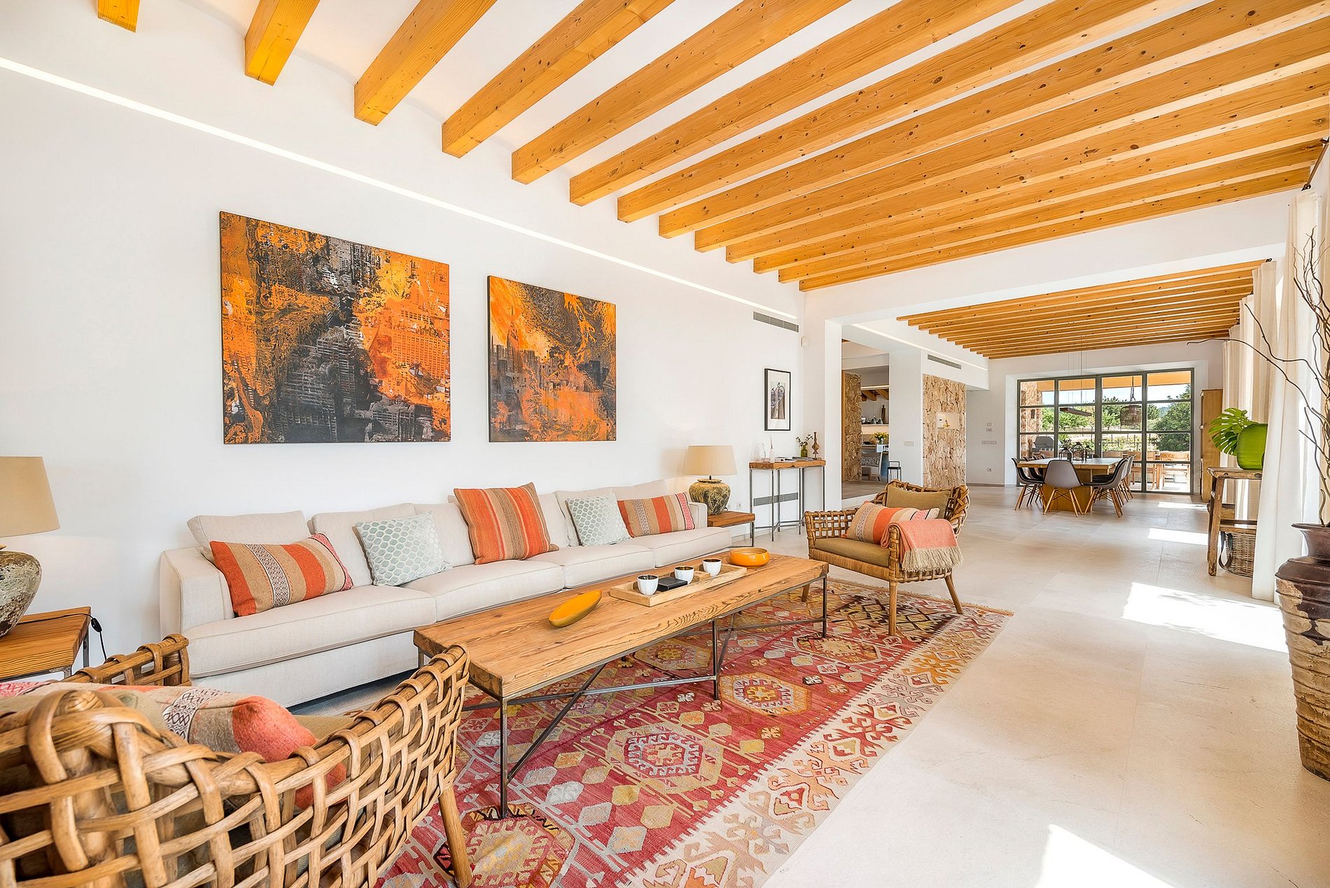 La maison est meublée de façon moderne avec des couleurs et des matériaux chauds, qui créent une atmosphère de bien-être particulière. La cuisine est moderne et entièrement équipée.