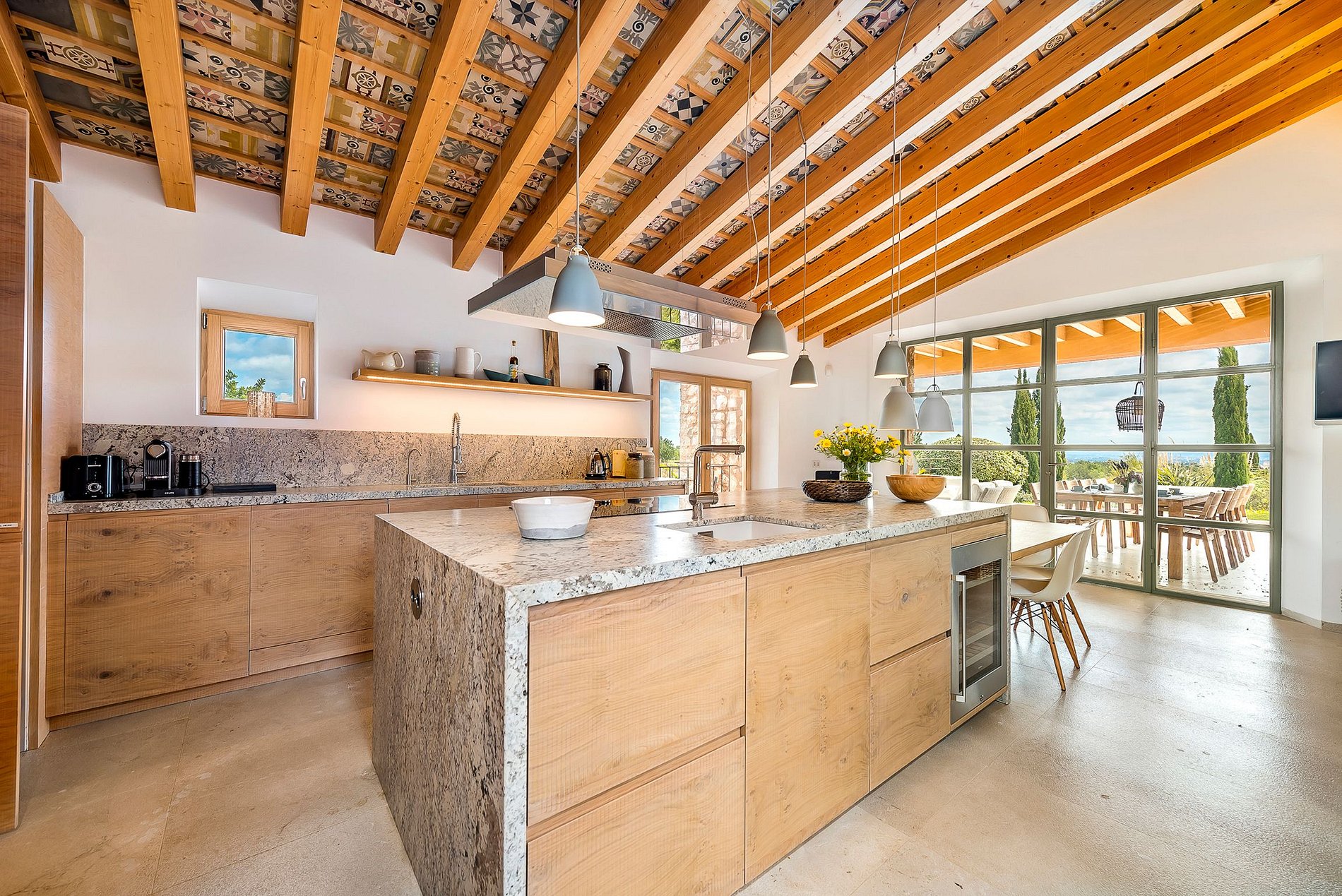 Les grandes fenêtres orientées au sud offrent beaucoup de lumière et une vue magnifique sur les oliviers, les amandiers et les caroubiers.