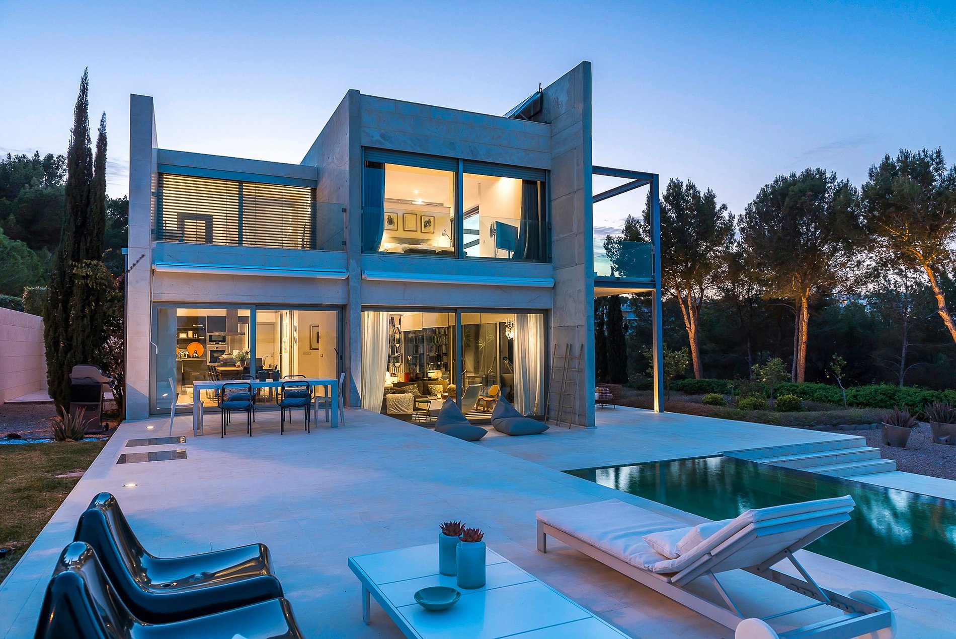La maison peut accueillir jusqu'à 8 invités sur 450 m² de surface habitable répartis sur deux étages qui comprennent 4 chambres doubles avec salles de bains attenantes. Il y a une cuisine ultramoderne et entièrement équipée.
