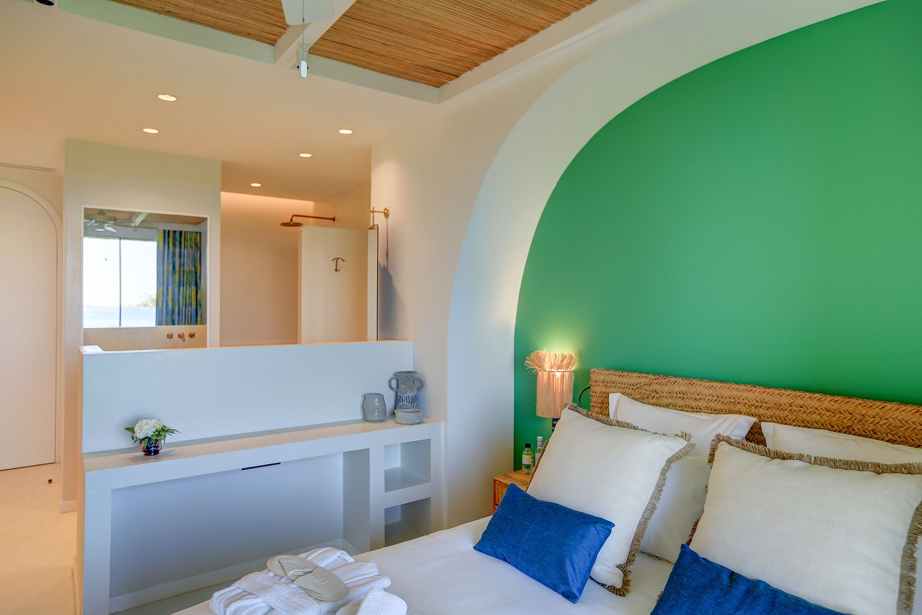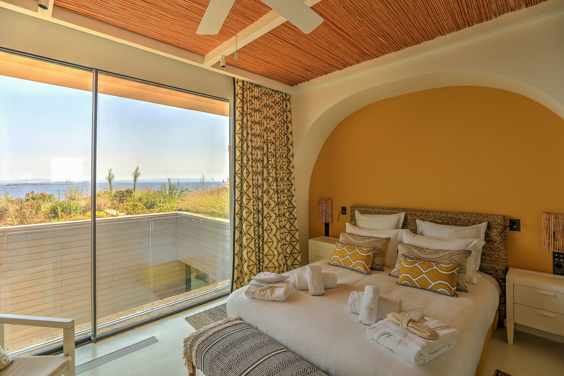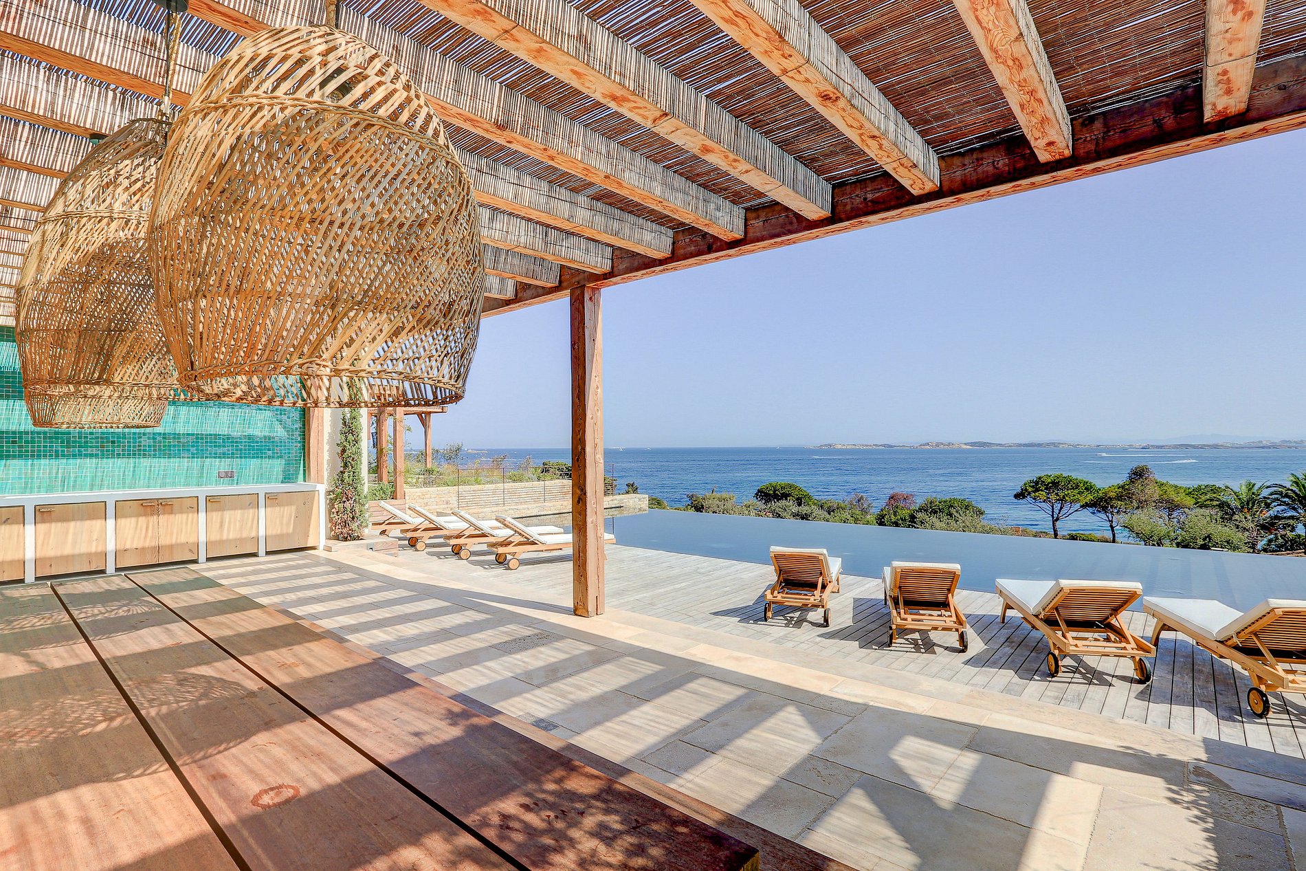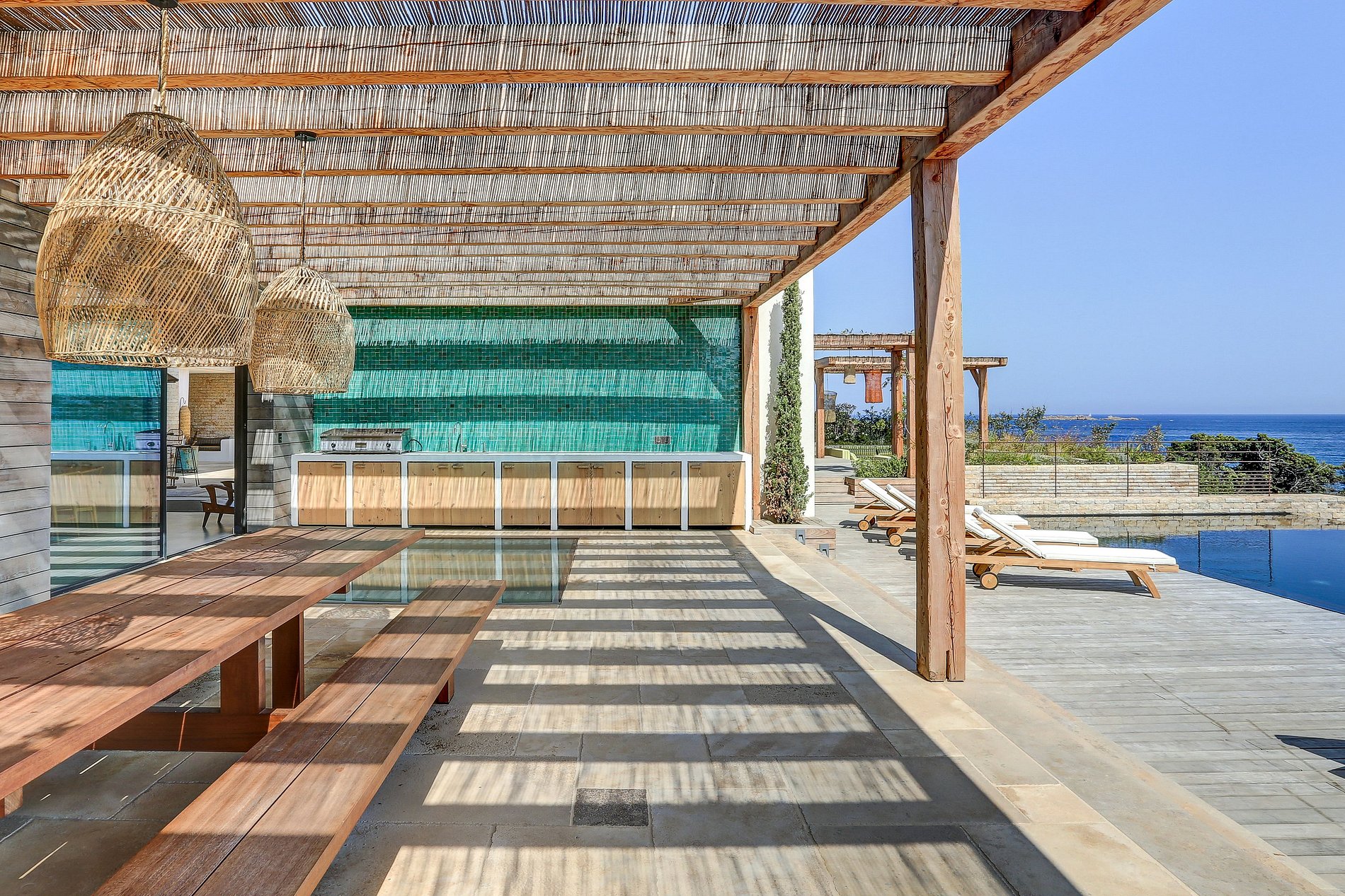 Baignée de soleil et ouverte sur la mer, la villa a été conçue avec des matériaux nobles, un savoir-faire artisanal raffiné, et des tons naturels et doux qui prolongent le paysage environnant.