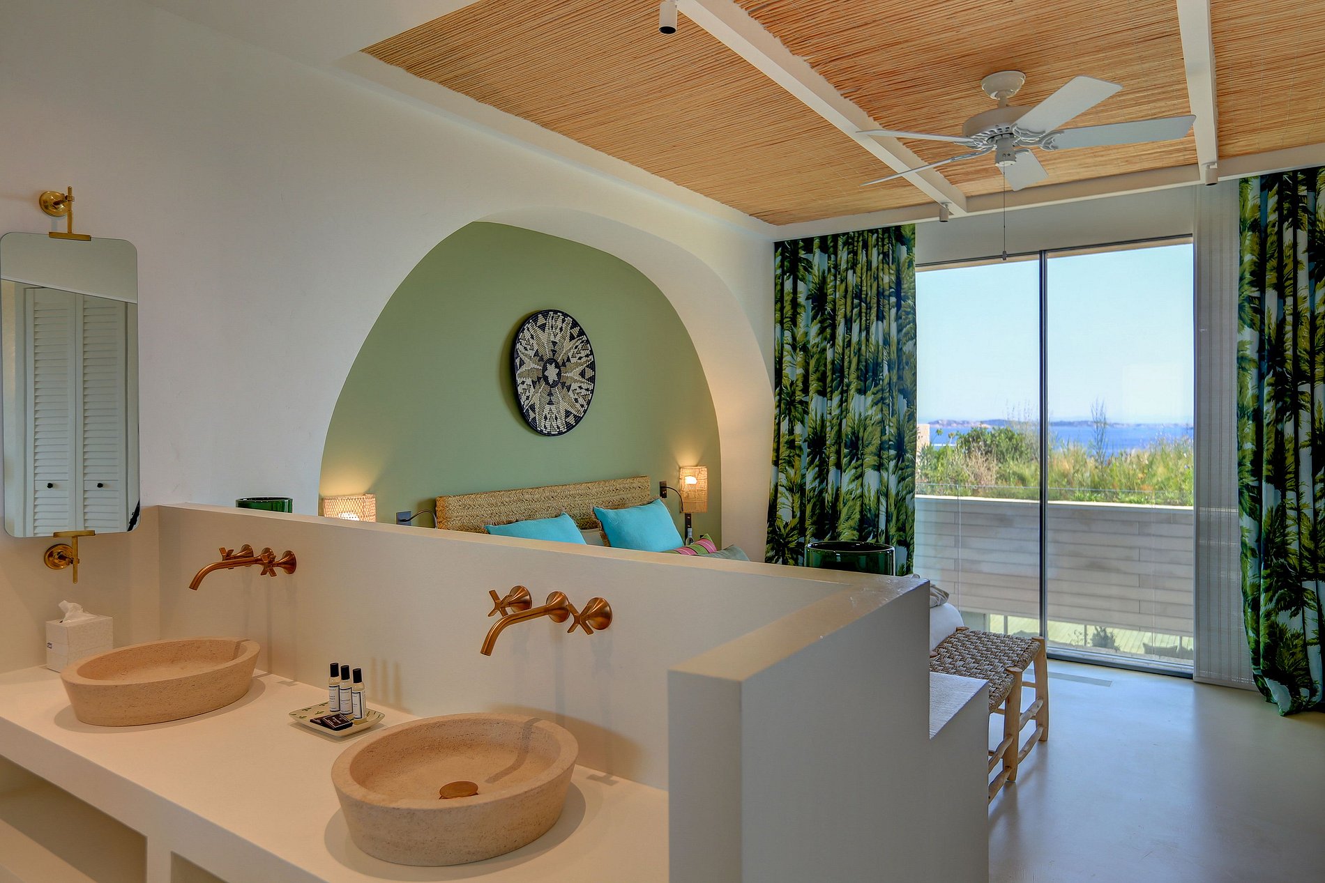 Baignée de soleil et ouverte sur la mer, la villa a été conçue avec des matériaux nobles, un savoir-faire artisanal raffiné, et des tons naturels et doux qui prolongent le paysage environnant.