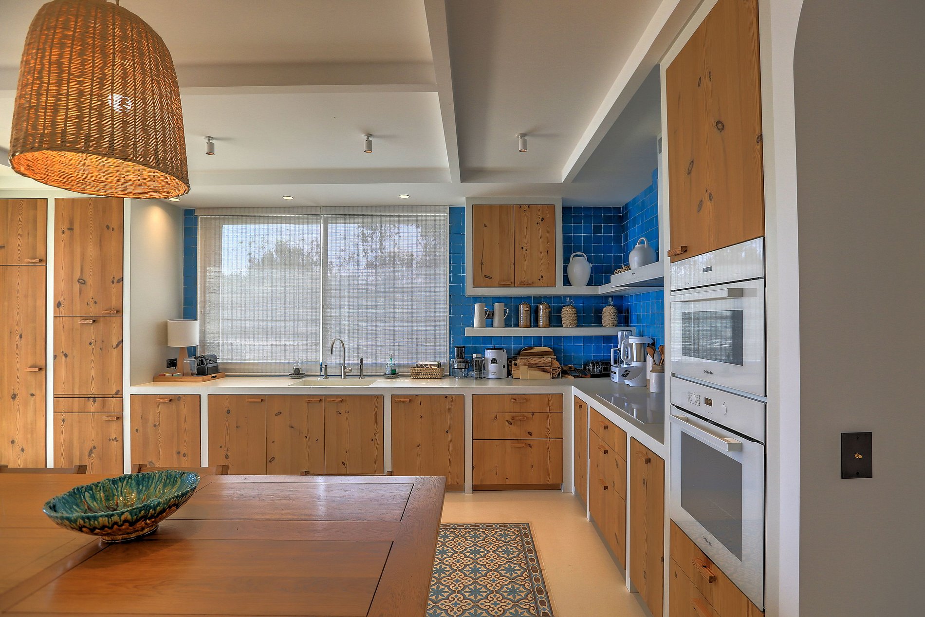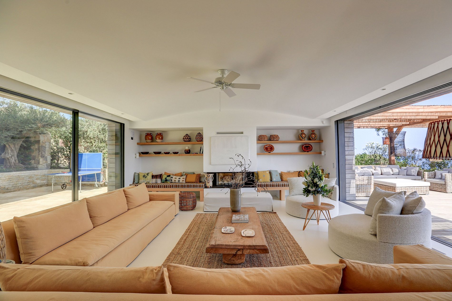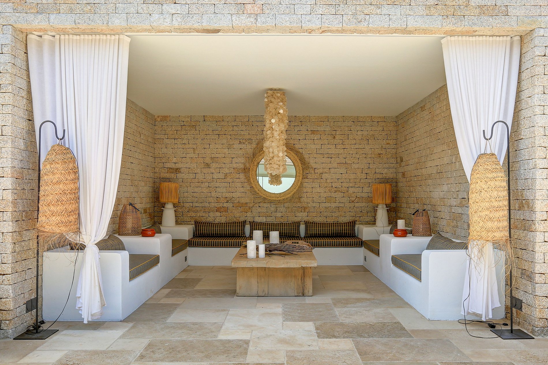Baignée de soleil et ouverte sur la mer, la villa a été conçue avec des matériaux nobles, un savoir-faire artisanal raffiné, et des tons naturels et doux qui prolongent le paysage environnant.