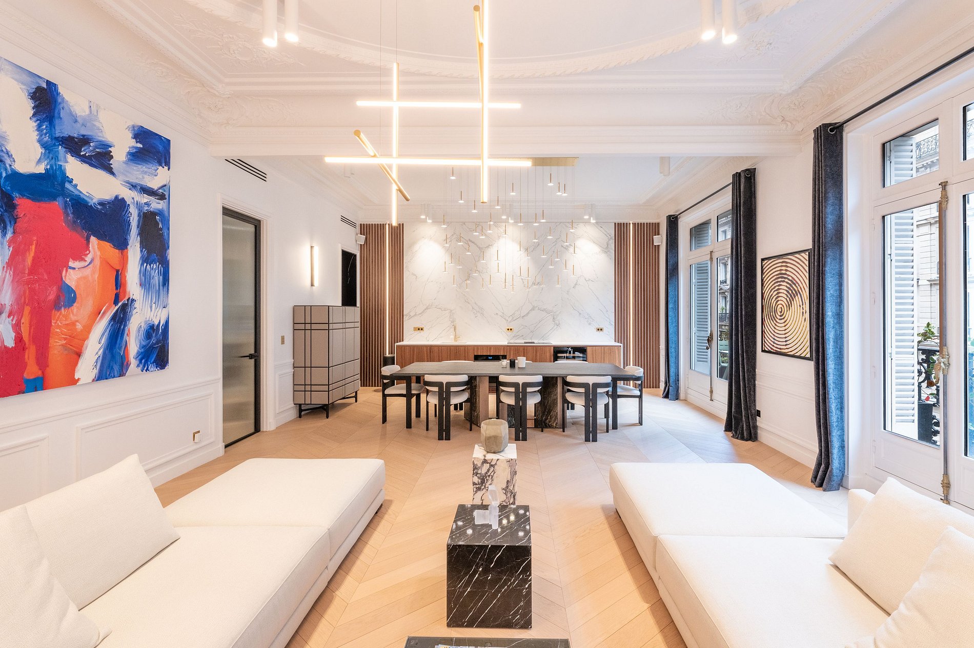 Cet appartement de luxe de 160 m², niché dans le prestigieux quartier du Palais Royal, est un exemple d'élégance urbaine et de confort. L'une de ses caractéristiques principales est un balcon de 15 m², orné d'une petite table, parfait pour savourer une boisson tout en profitant de la vue à couper le souffle d'une partie du Louvre et des luxuriants Jardins des Tuileries.