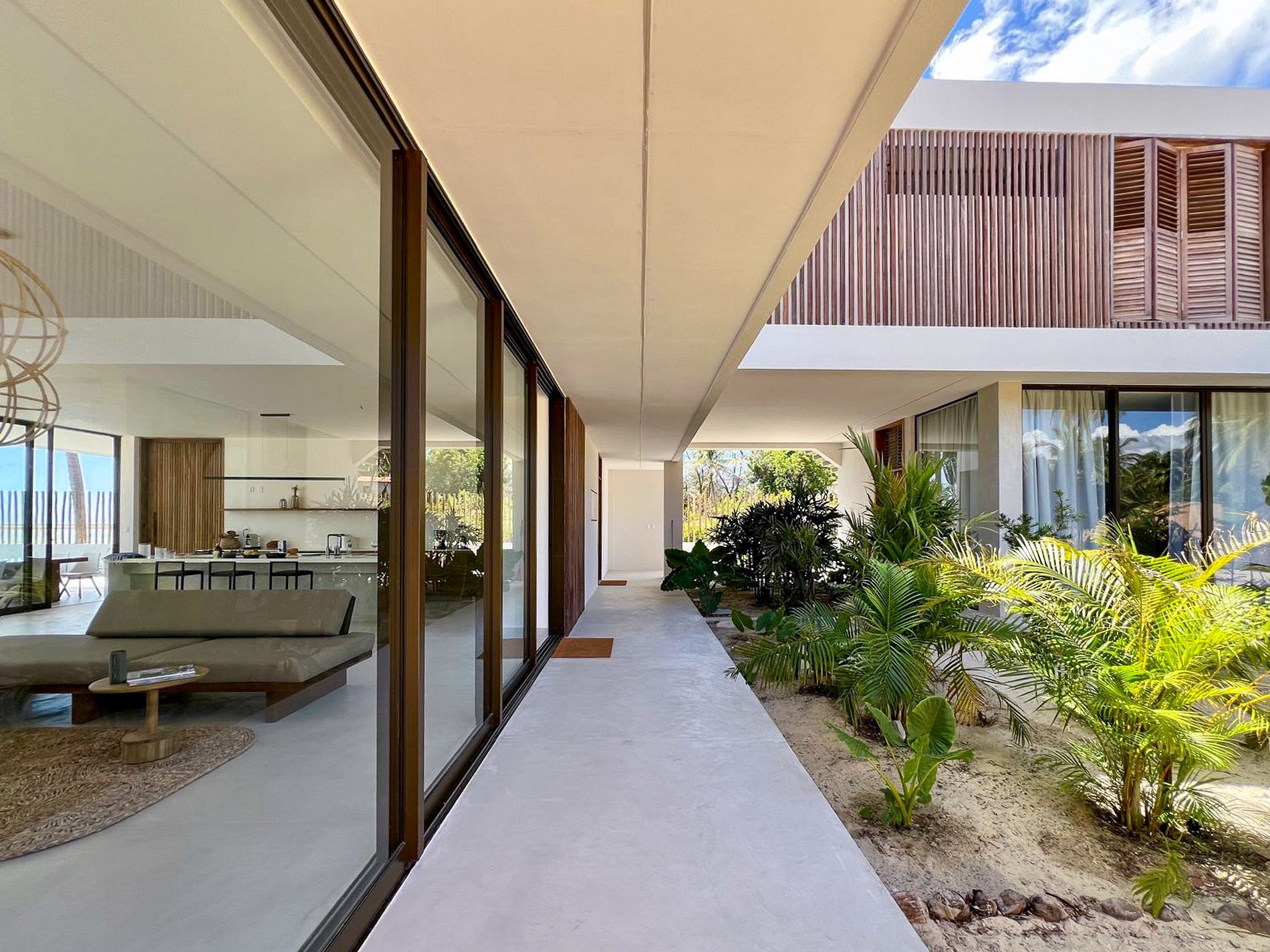 L’architecture moderne, aux lignes épurées, s’intègre parfaitement à l’environnement tropical. Chaque pièce de la maison est dotée de grandes baies vitrées, inondant les espaces de lumière naturelle et offrant une vue imprenable sur la mer, l’ile ou le jardin luxuriant. L’intérieur et l’extérieur se fondent en parfaite harmonie, créant une atmosphère élégante, chaleureuse et détendue.