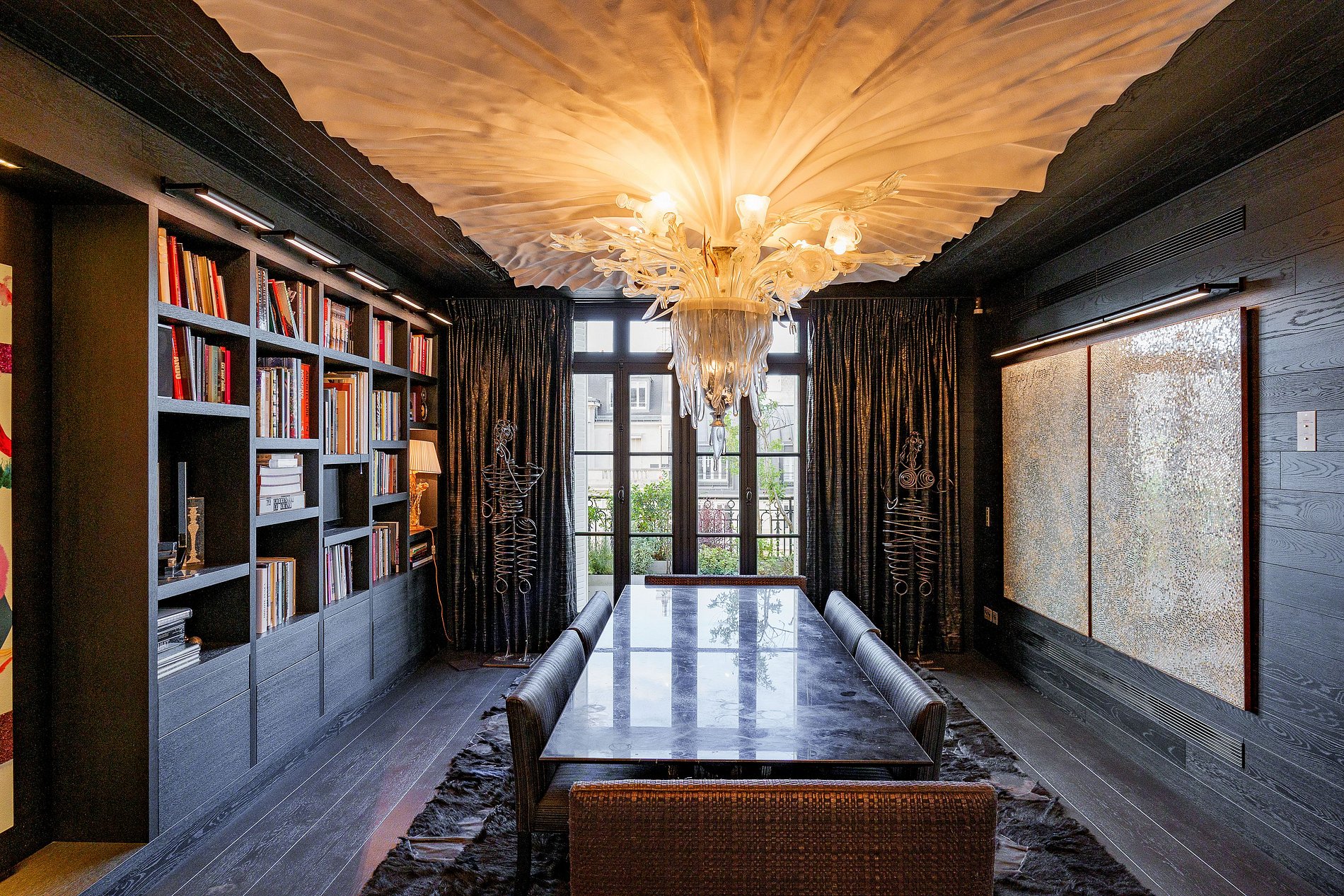 Cet extraordinaire penthouse, ancienne suite présidentielle, est un joyau au cœur de Paris, situé aux sixième et septième étages d'une résidence prestigieuse.