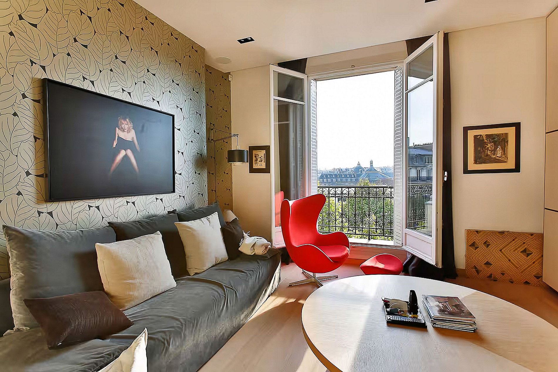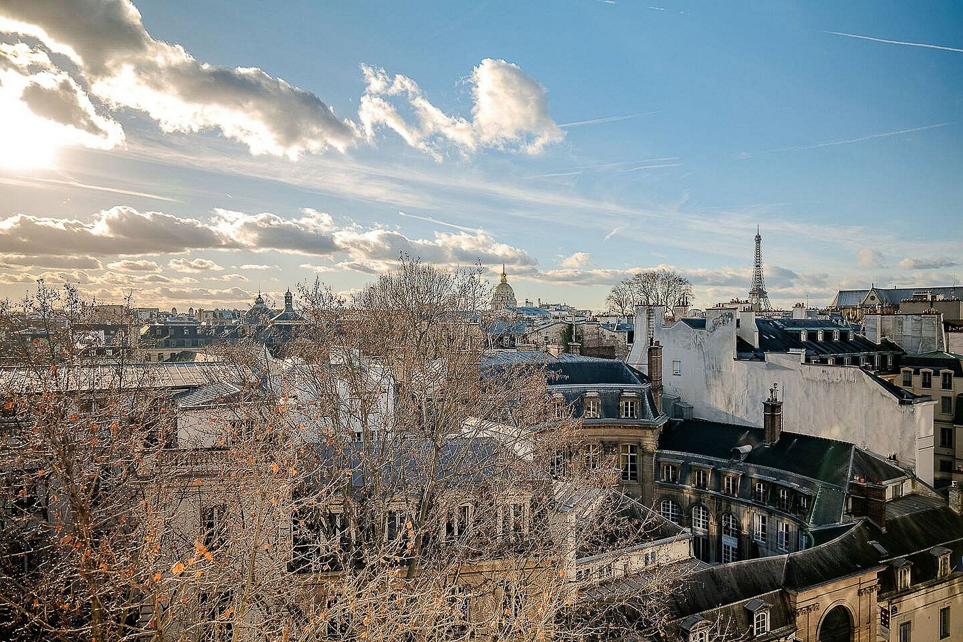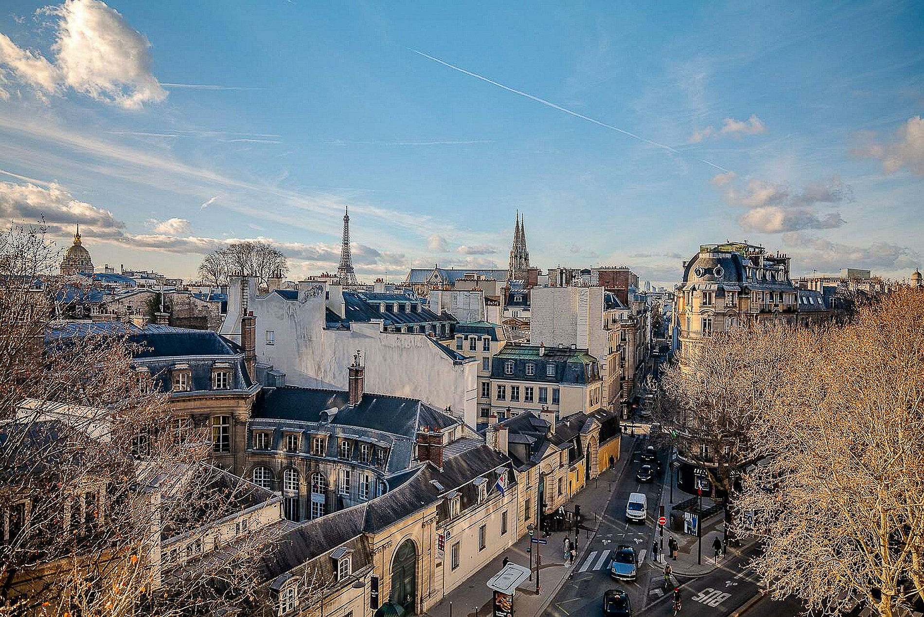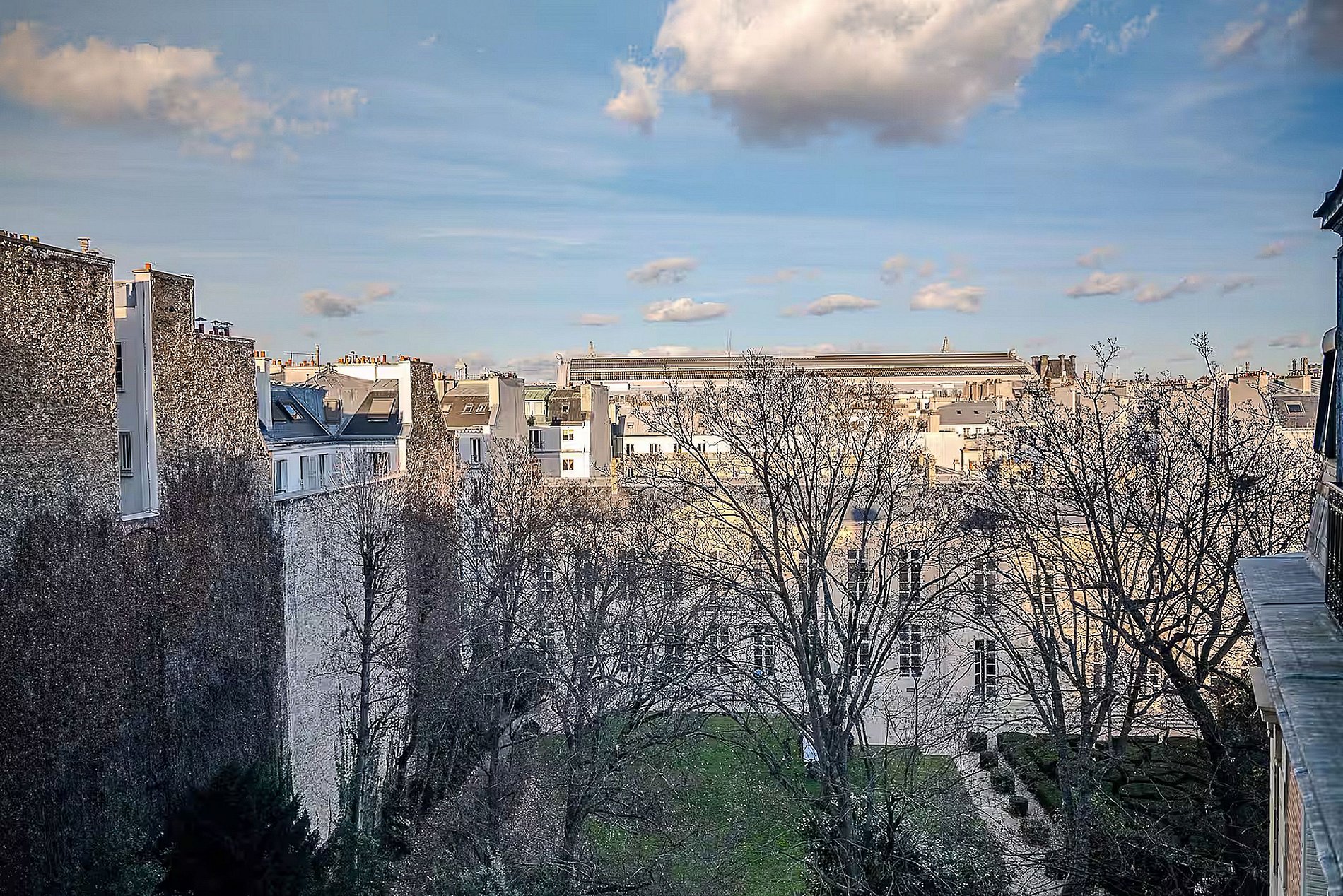 Vues Panoramiques Exceptionnelles : Chaque fenêtre encadre des vues emblématiques de Paris. Un balcon généreux offre une vue spectaculaire sur la rue, incluant la Tour Eiffel, le dôme doré des Invalides, les tours de La Défense et l’imposant Panthéon. À l'arrière, les fenêtres s'ouvrent sur les paisibles jardins de l’ancienne demeure de Karl Lagerfeld.