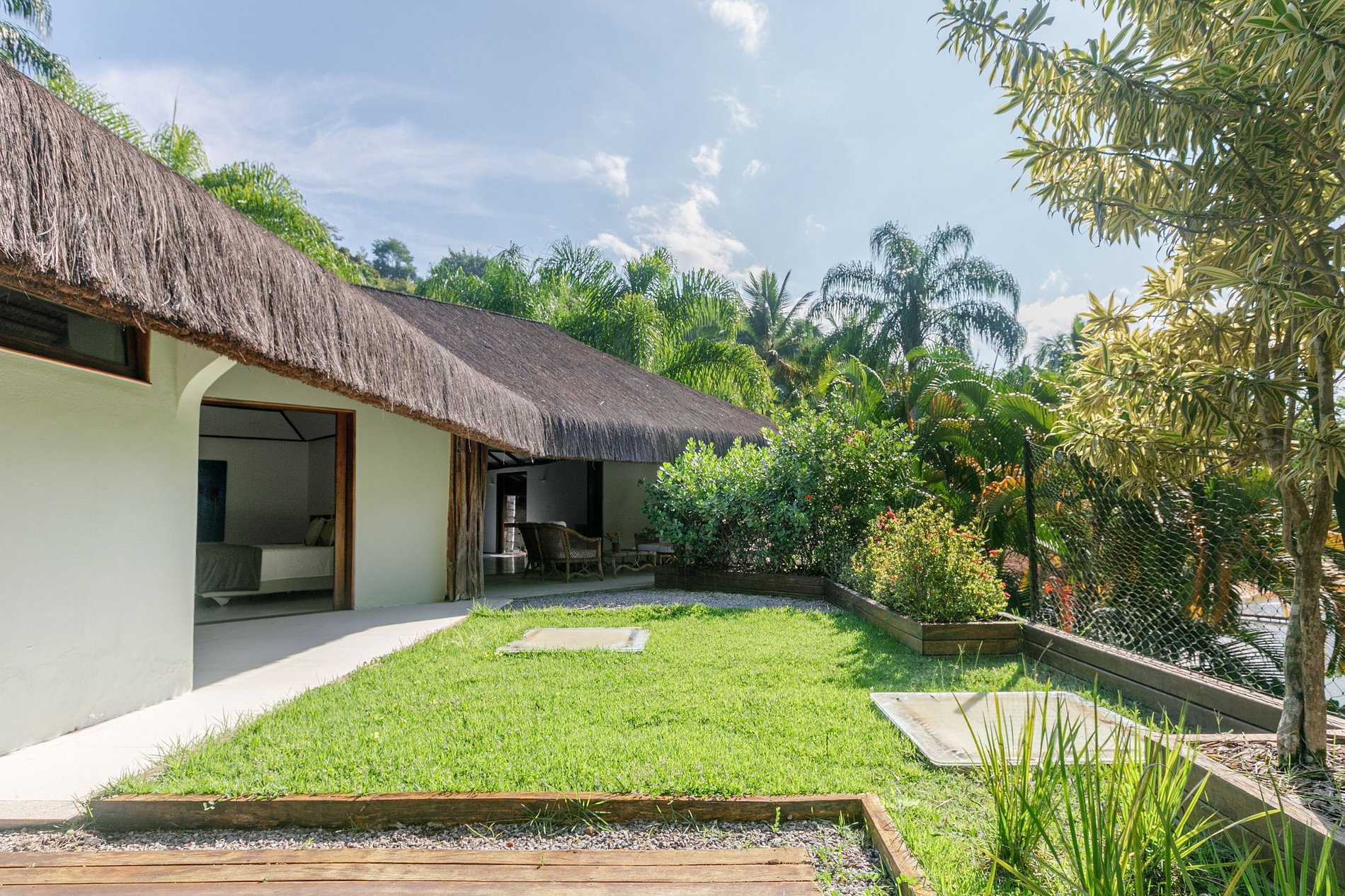Villa authentique et de luxe SAPE construit essentiellement de bois Quari-Qura aux toits de chaume et est situé en face de la mer, avec une vue magnifique sur la baie Mangaratiba. Entouré de verdure, cette belle villa de plage de luxe possède sa propre plage privée, un quai, hélistation, une magnifique piscine et jacuzzi.