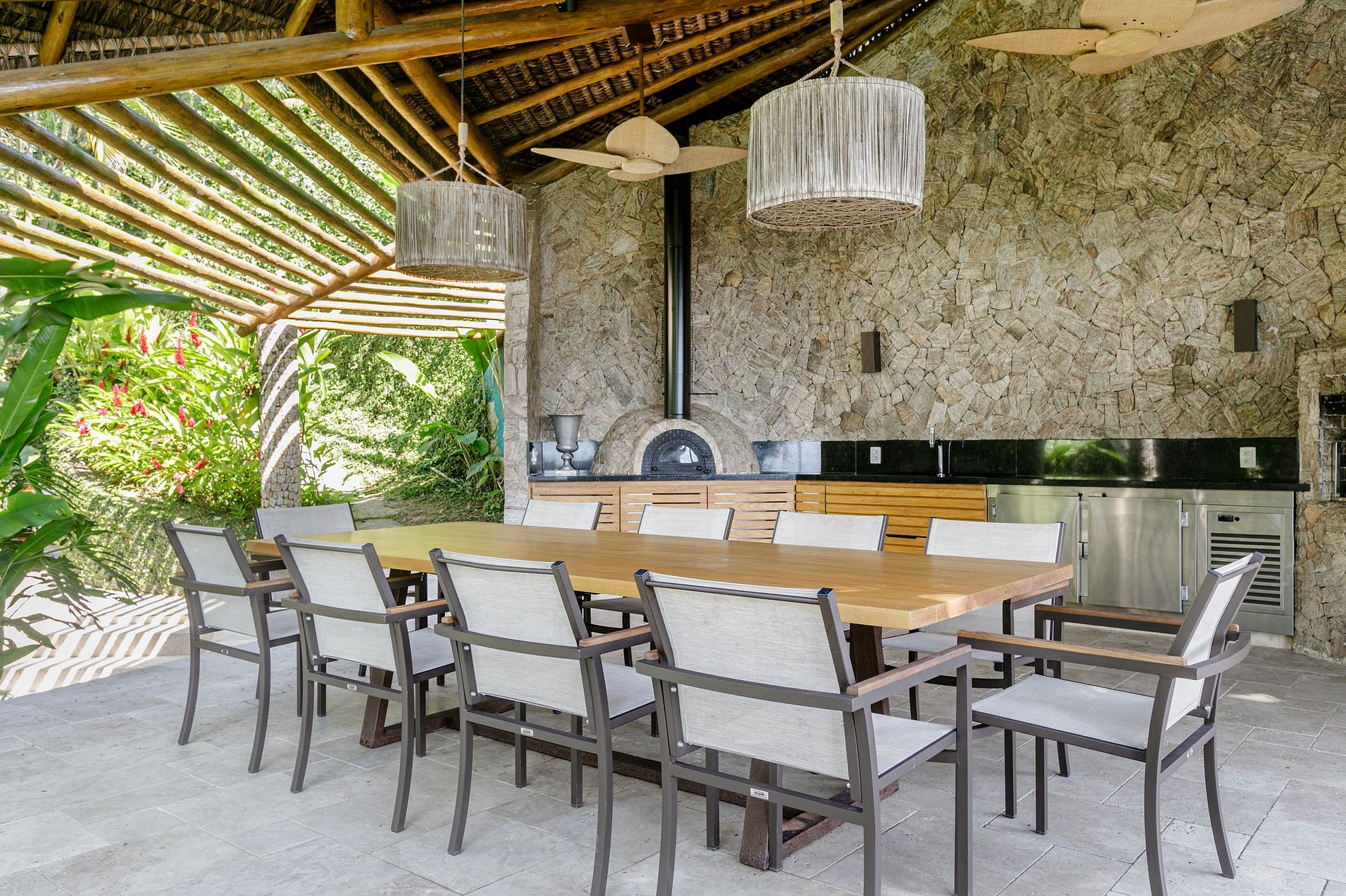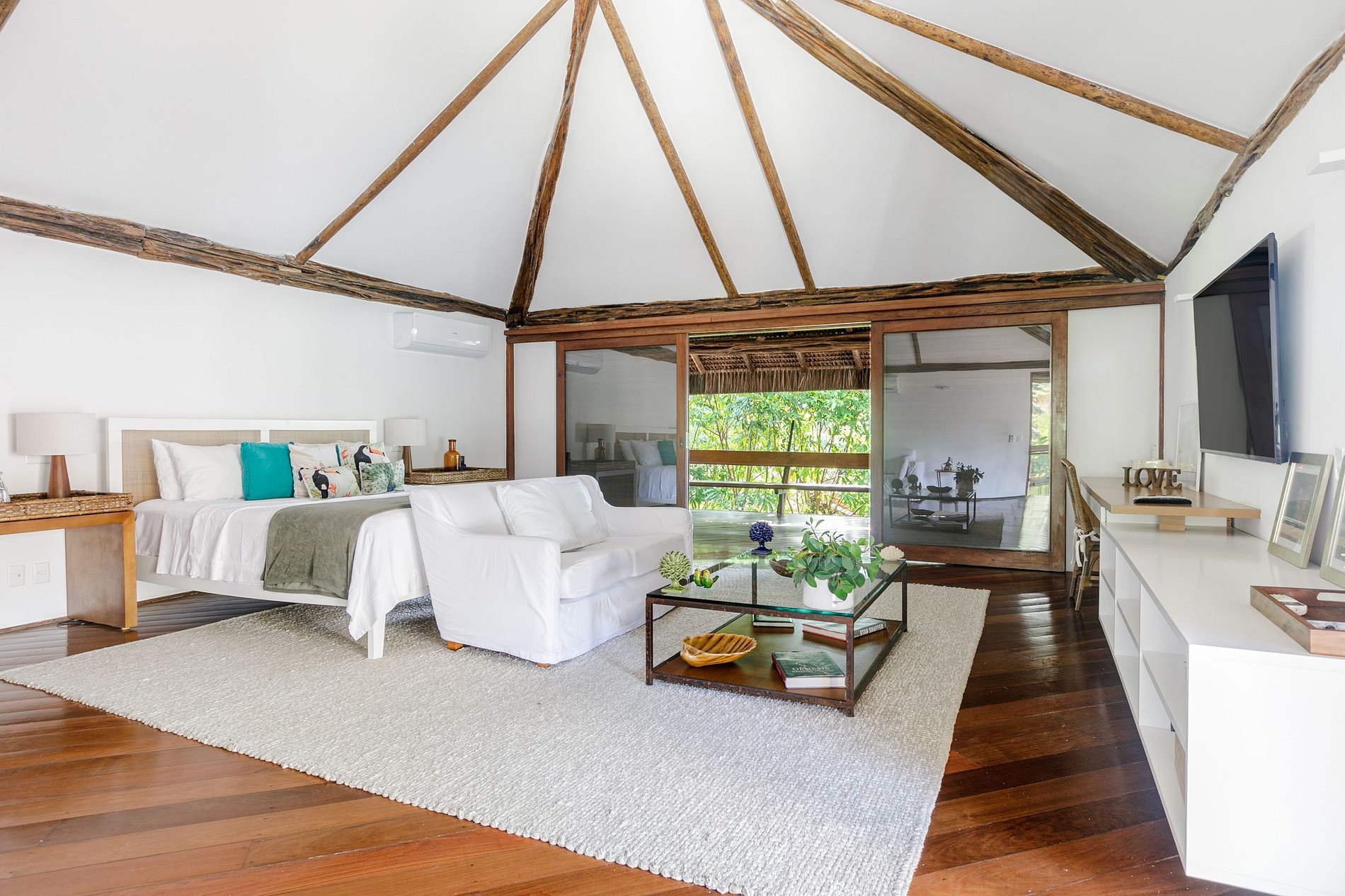 Belle et unique maison de plage en bord de mer, construite essentiellement de bois quari-quara et toiture de chaume, donnant une magnifique vue sur la baie de Mangaratiba. La maison a sa propre plage privée, une jetée qui sert d'héliport, une magnifique piscine et jacuzzi. L'accès à la maison pourra se faire par bateau à moteur, si souhaité.