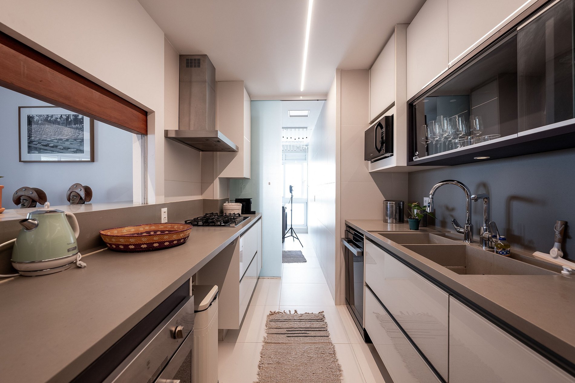 Dès l’entrée, la vue saisit : un panorama spectaculaire sur la ville, le Corcovado et son Christ Rédempteur, la forêt de Tijuca et la Lagoa. Ici, chaque pièce semble dialoguer avec le paysage.