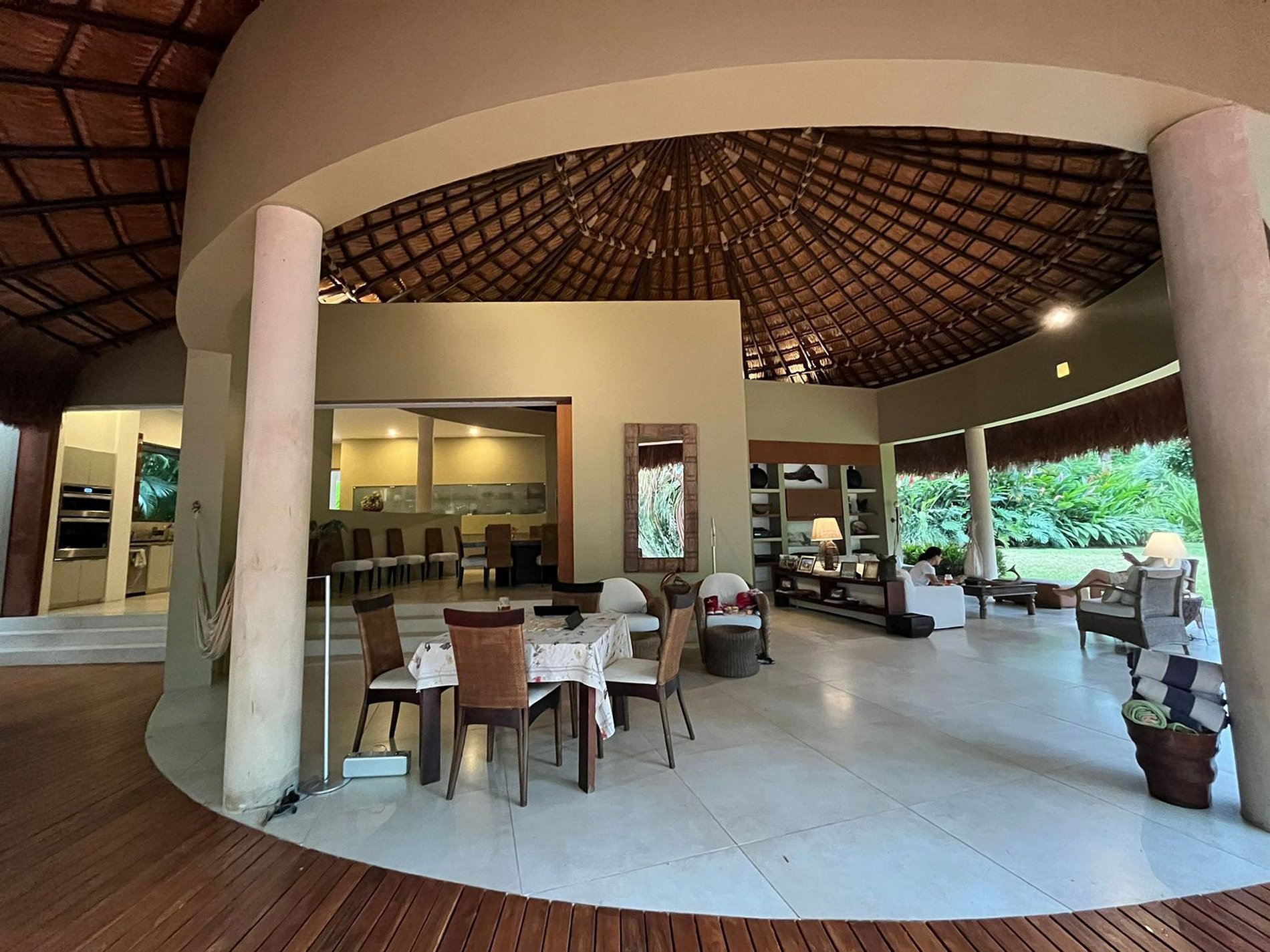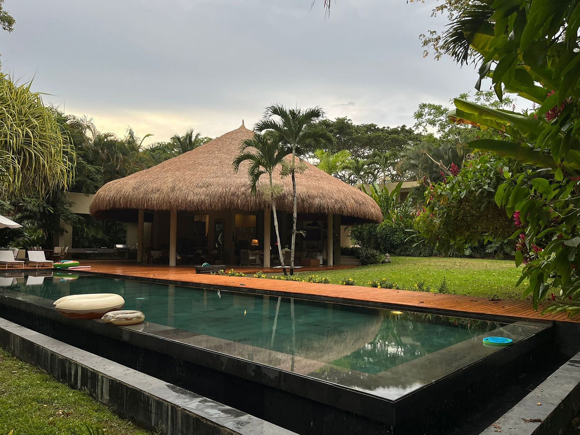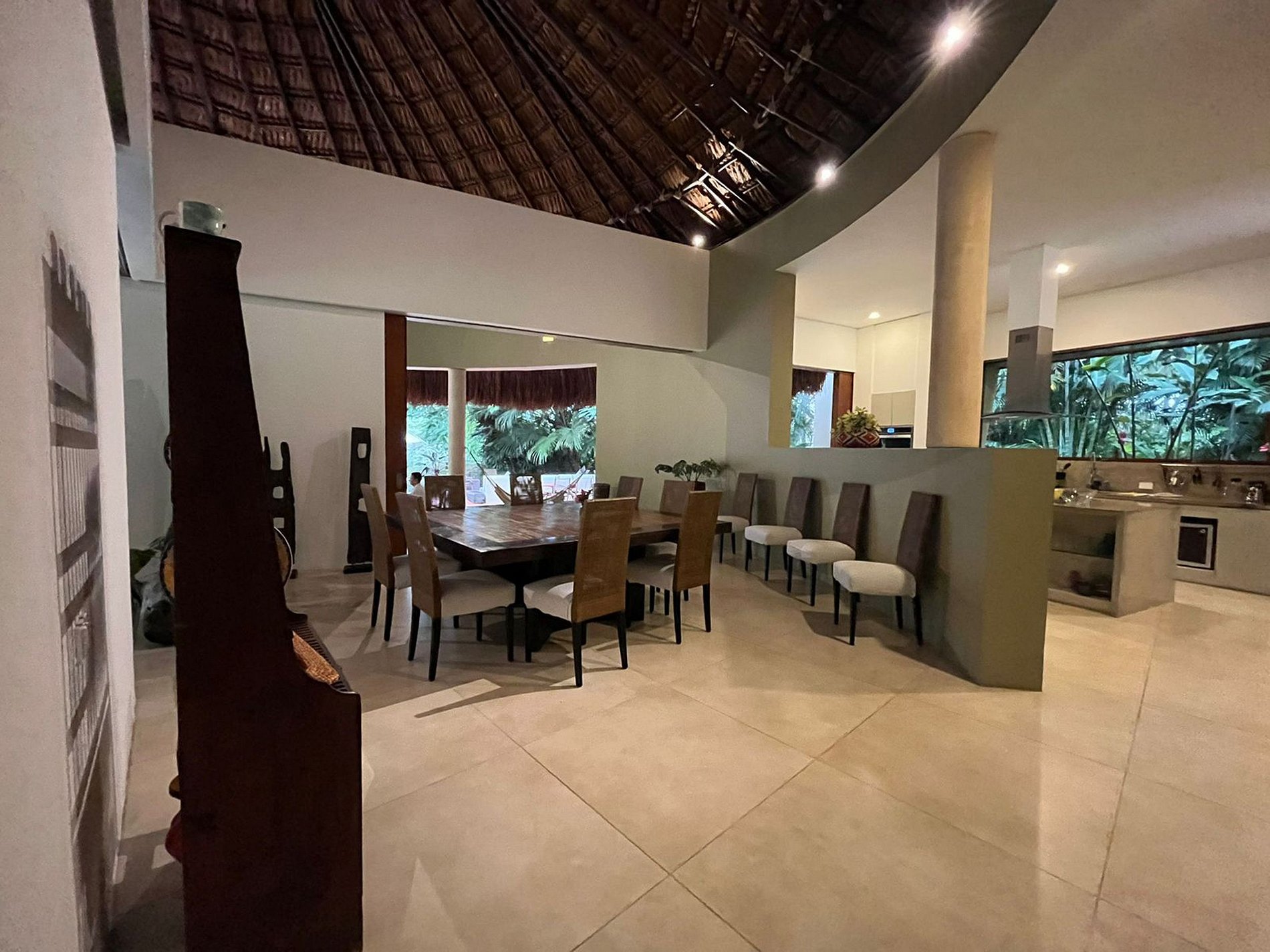 Sortez pour découvrir un grand kiosque de palapa près de la piscine rafraîchissante, entouré de verdure luxuriante. L'espace extérieur appelle avec une zone barbecue, une salle à manger supplémentaire et un espace lounge, créant un cadre parfait pour la détente et la socialisation.