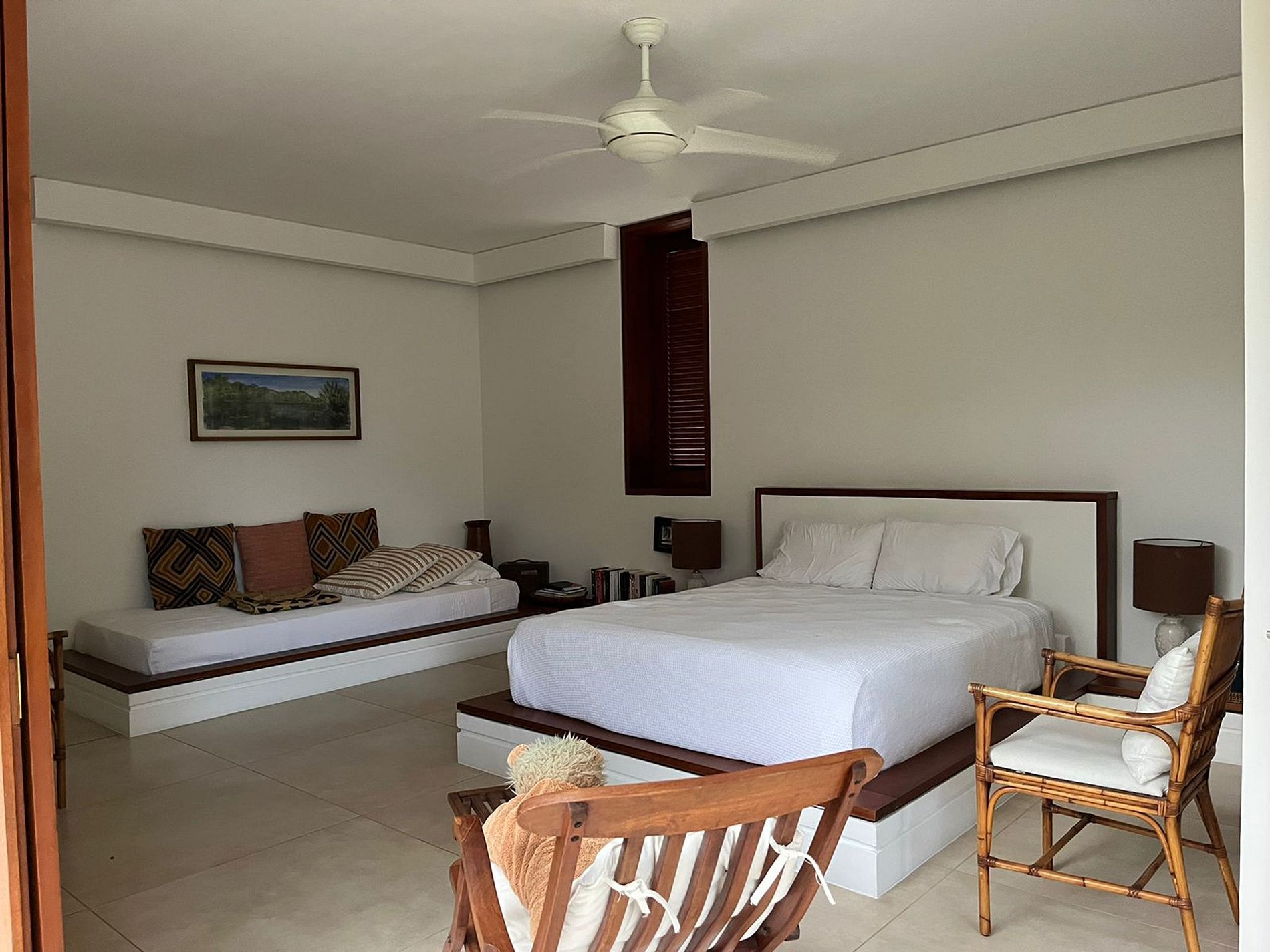 Les chambres bien conçues offrent une variété d'aménagements de couchage, des majestueux lits King et Queen au confortable ensemble de lits simples, tous équipés de ventilateurs de plafond. Idéale pour les grands groupes, cette maison peut accueillir jusqu'à 16 personnes.