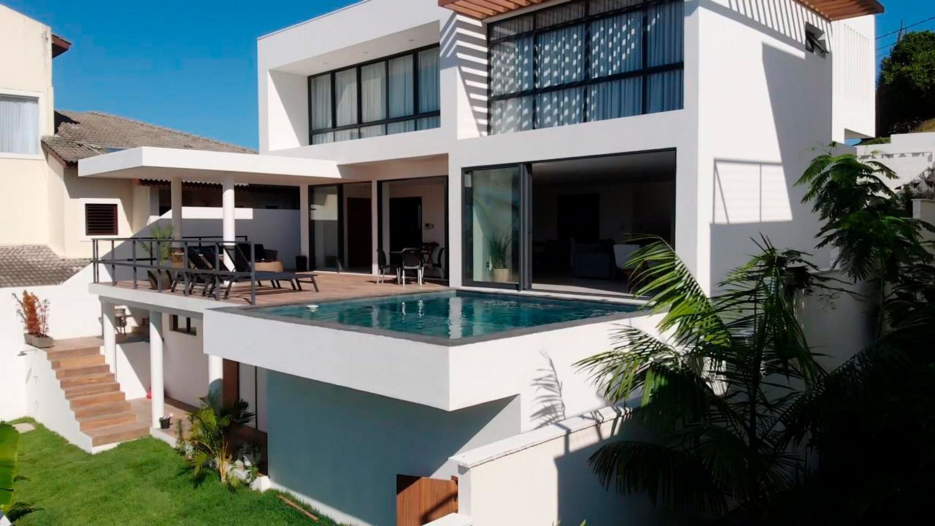 À l’extérieur, vous profiterez de la piscine et du barbecue sur la jolie terrasse surélevée.
