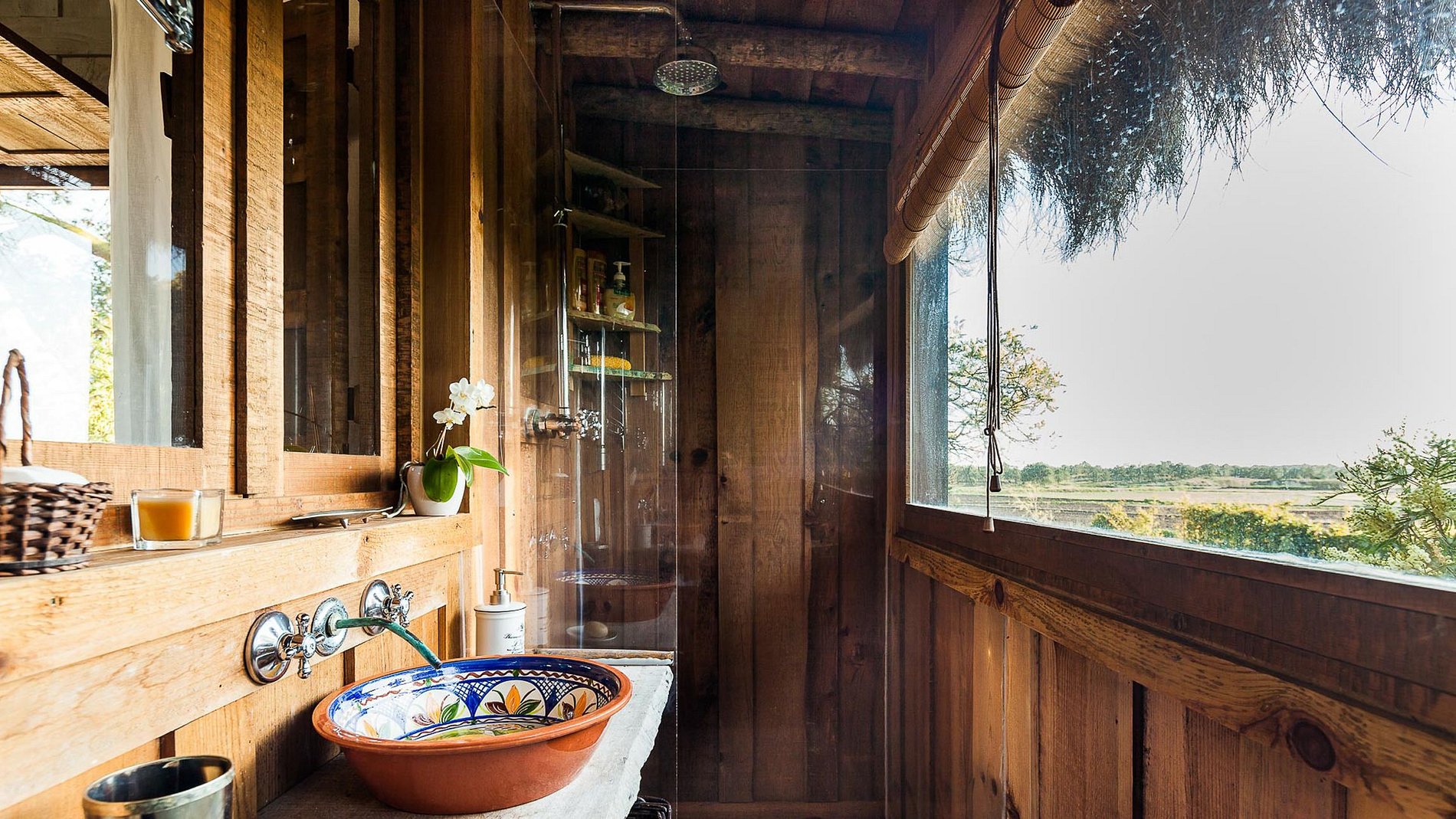 Magnifique maison de style cabane, située dans un complexe entouré de rizières et baigné d'une lumière dorée !