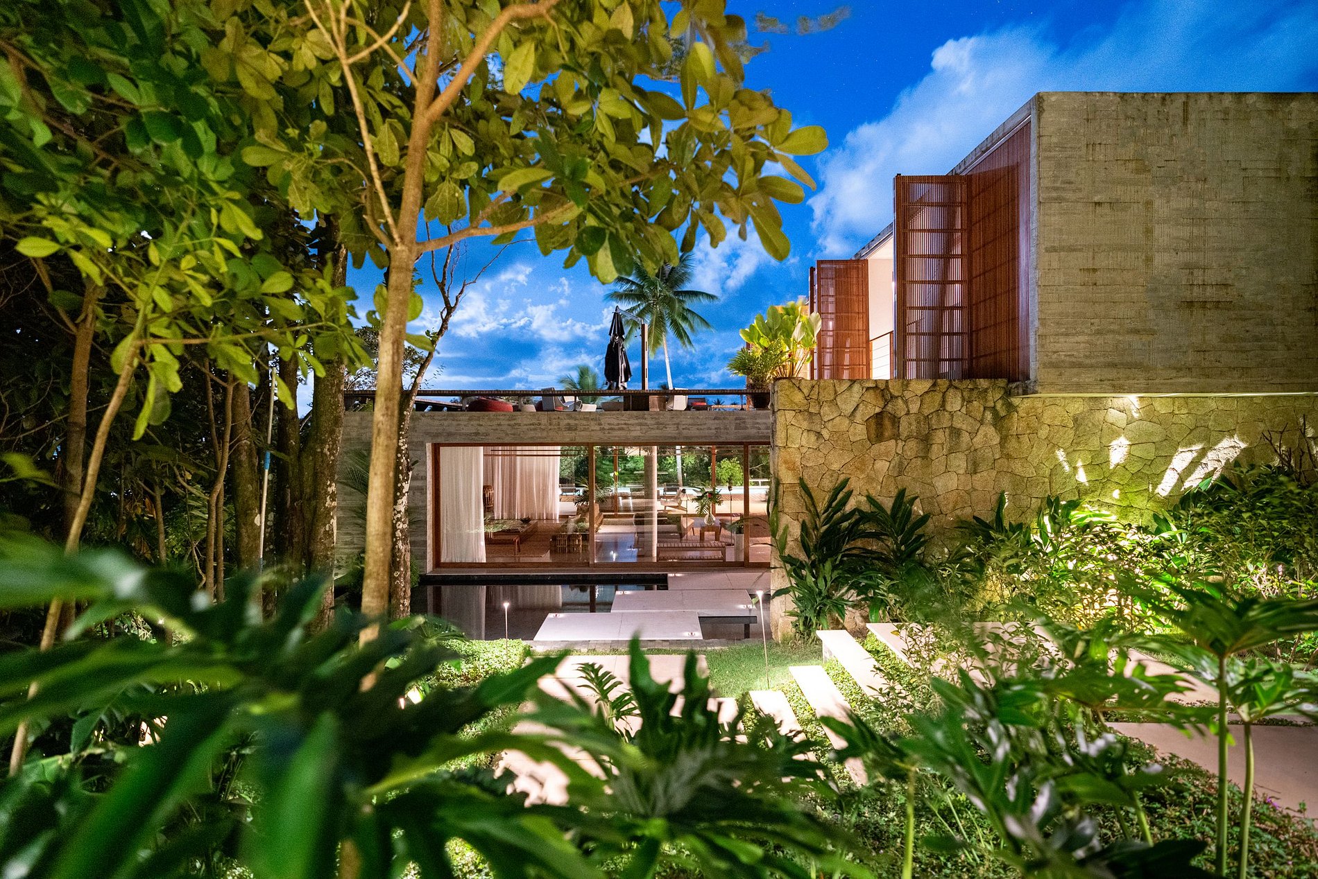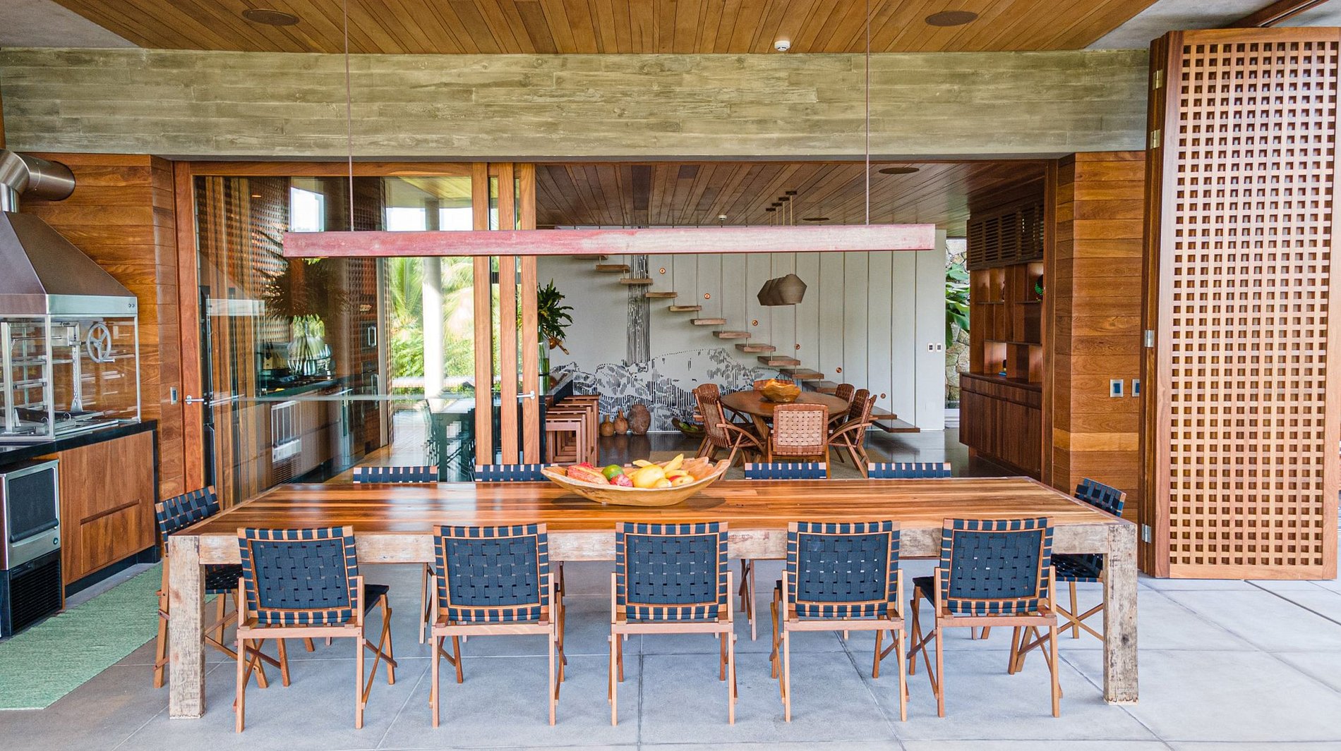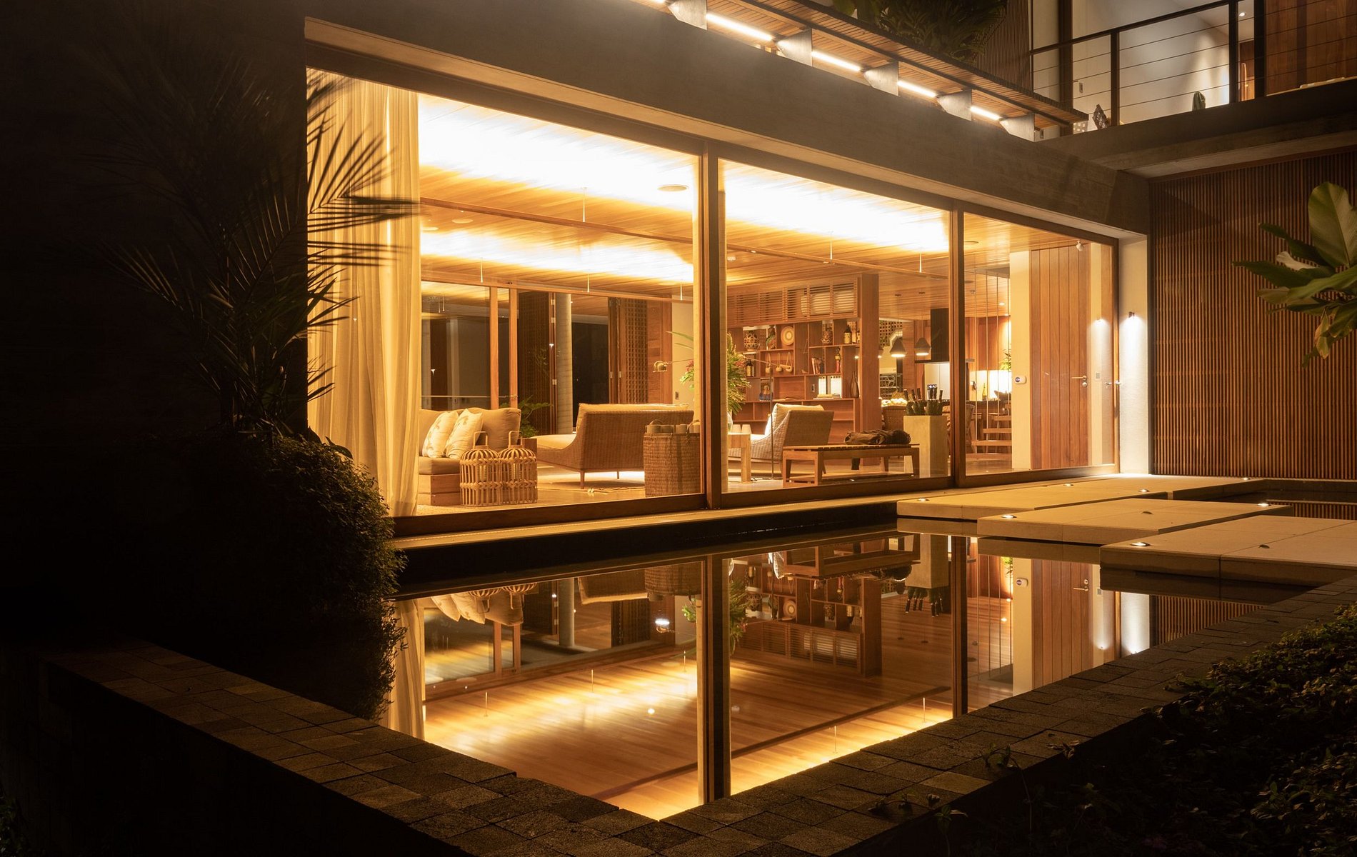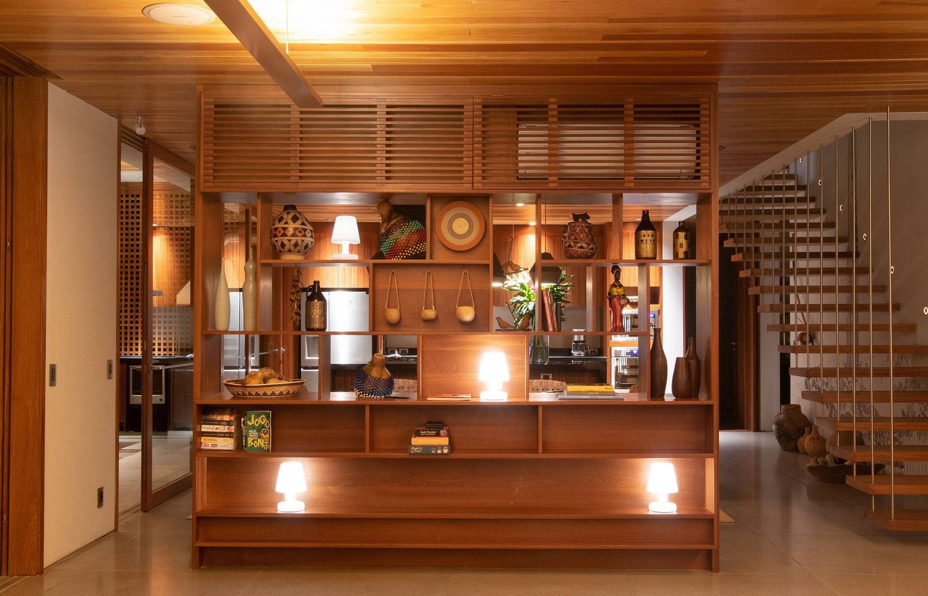 L'architecture et la décoration intérieure de la maison sont un hommage à la fusion culturelle entre le Brésil et la Scandinavie, où une attention méticuleuse aux détails est évidente. Les éléments rustiques se mélangent aux surfaces modernes et aux textures naturelles, créant un environnement qui non seulement relie les clients à la nature majestueuse qui les entoure, mais célèbre également la riche culture locale. La décoration comprend des pièces exclusives de designers brésiliens de renom et d'artisans locaux, garantissant un séjour plein de style et d'authenticité.
