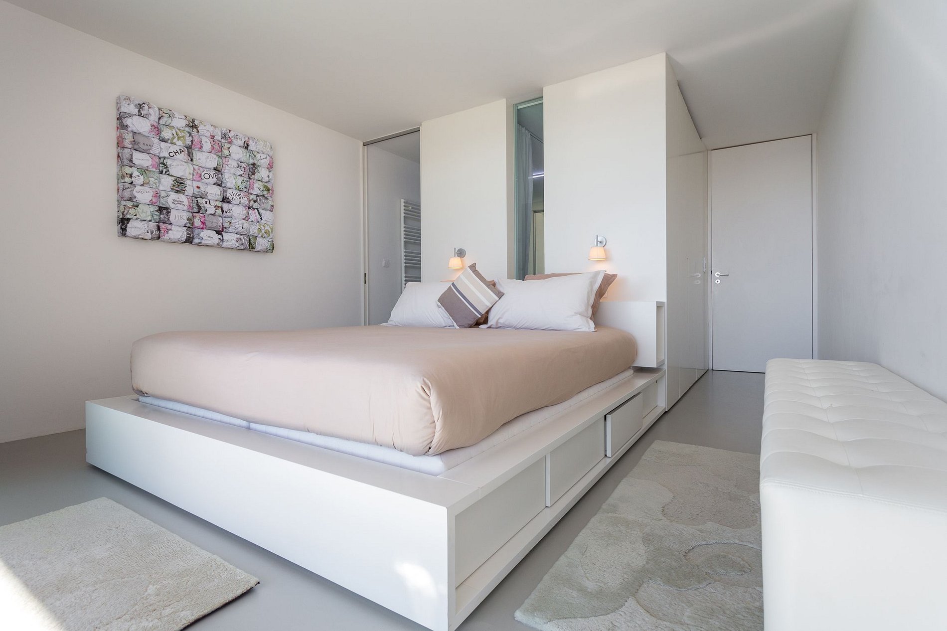 La maison est lumineuse et épurée et s'adapte parfaitement à la région, une piscine bleue et une large vue sur la mer.