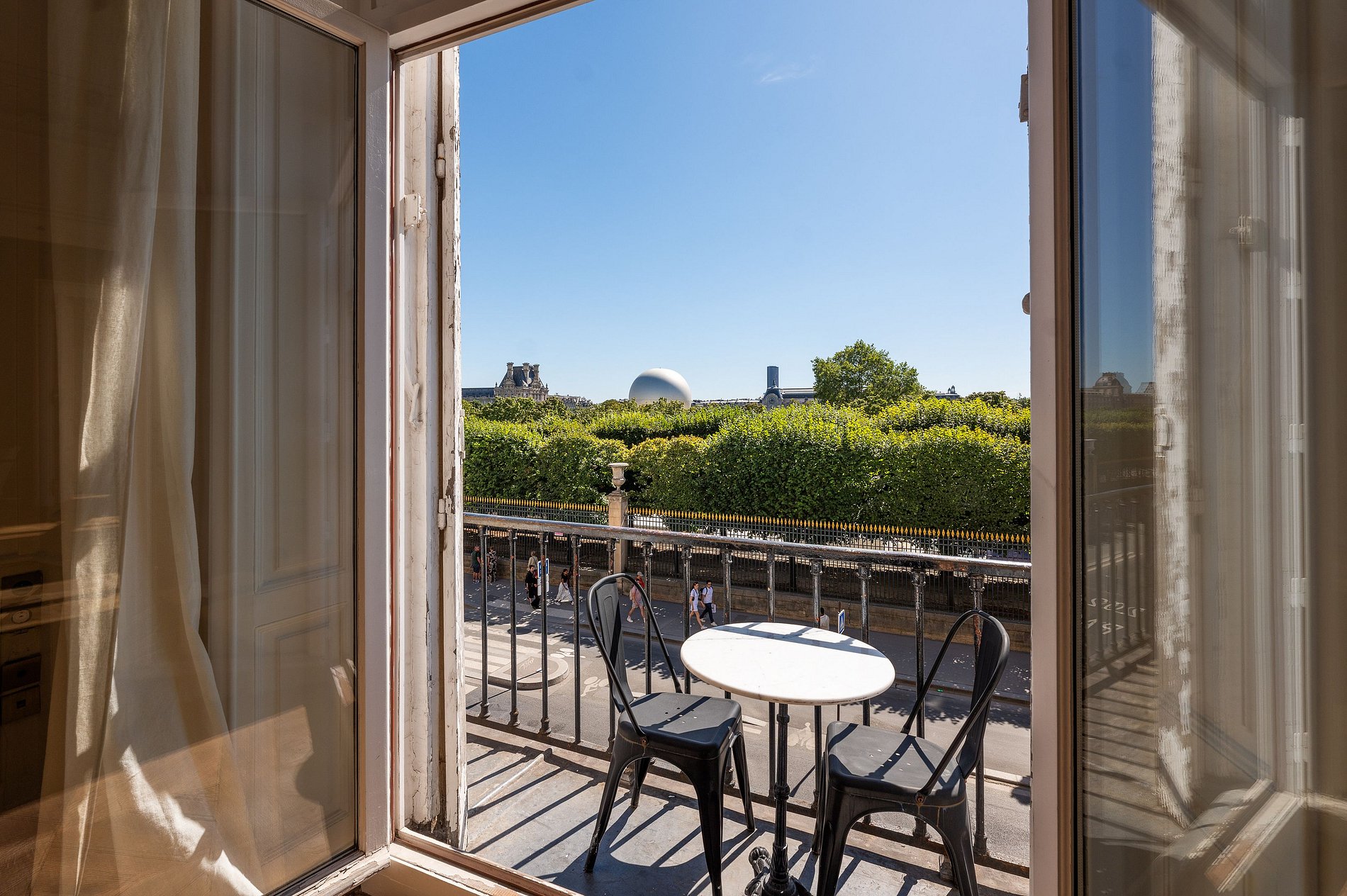 Donnant sur les sereins Jardins des Tuileries, les résidents jouissent d'un festin visuel incluant le majestueux Louvre, le distingué Musée d'Orsay, le grandiose Grand Palais, et l’iconique Tour Eiffel. Ce point de vue unique offre non seulement une vue panoramique sur la beauté parisienne, mais aussi plonge les habitants au cœur du riche tissu culturel de la ville.