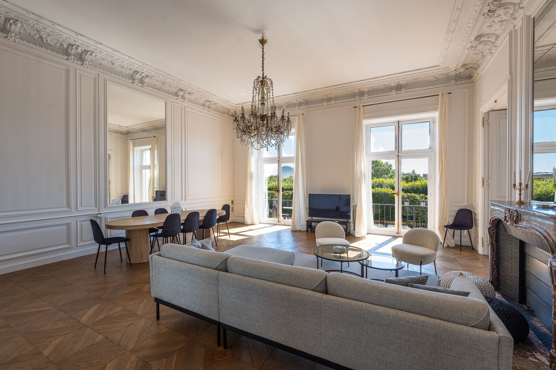 Donnant sur les sereins Jardins des Tuileries, les résidents jouissent d'un festin visuel incluant le majestueux Louvre, le distingué Musée d'Orsay, le grandiose Grand Palais, et l’iconique Tour Eiffel. Ce point de vue unique offre non seulement une vue panoramique sur la beauté parisienne, mais aussi plonge les habitants au cœur du riche tissu culturel de la ville.