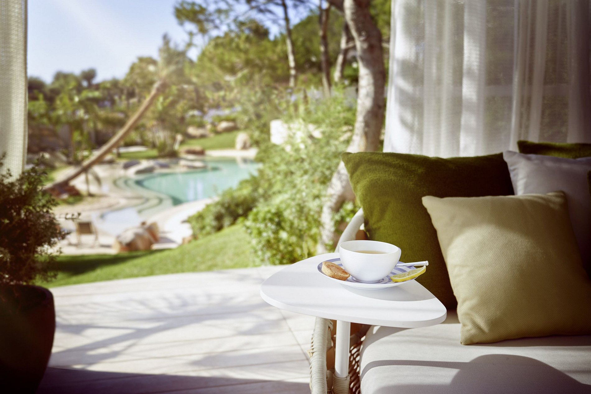 L'extérieur de l'île est un havre de relaxation et d'indulgence, présentant deux piscines à couper le souffle : une piscine à débordement de 23 mètres ornée de chaises longues et une piscine de style lagon nichée dans des jardins tropicaux luxuriants.