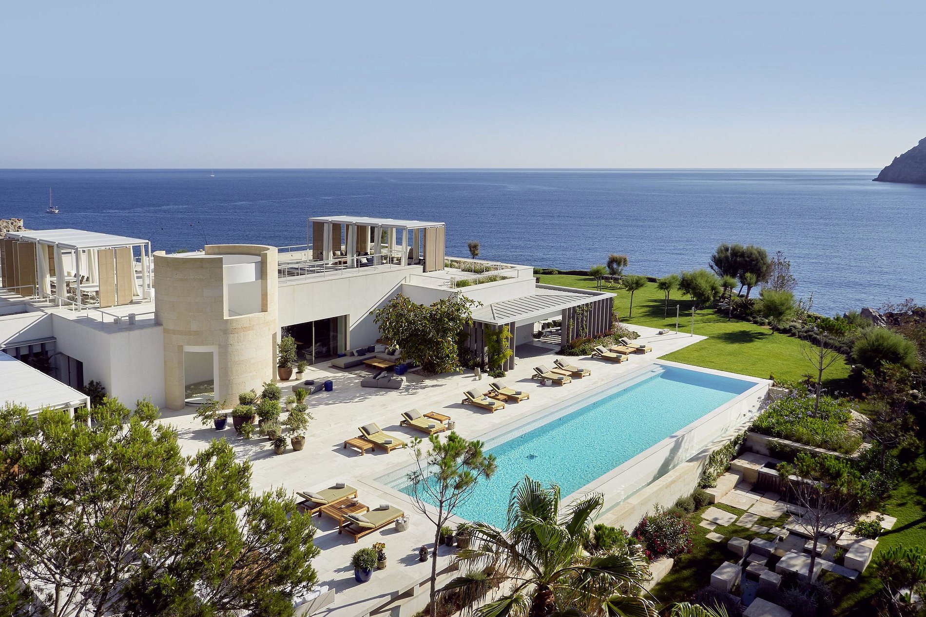 À l'intérieur, la villa dégage une ambiance sereine d'Ibiza avec ses espaces frais et aérés habillés de textures naturelles chaleureuses, de tons neutres et d'art local soigneusement sélectionné, incarnant l'essence décontractée de l'île. Le cœur de la villa, un patio central spacieux, est entouré de trois salons élégamment aménagés et d'une salle à manger, tous décorés dans un style baléarique chic. Les fenêtres du sol au plafond se rétractent sans effort dans les murs, fusionnant l'élégance intérieure avec le charme extérieur à travers diverses terrasses, offrant des bars, des zones de détente paisibles et des options de restauration en plein air.
