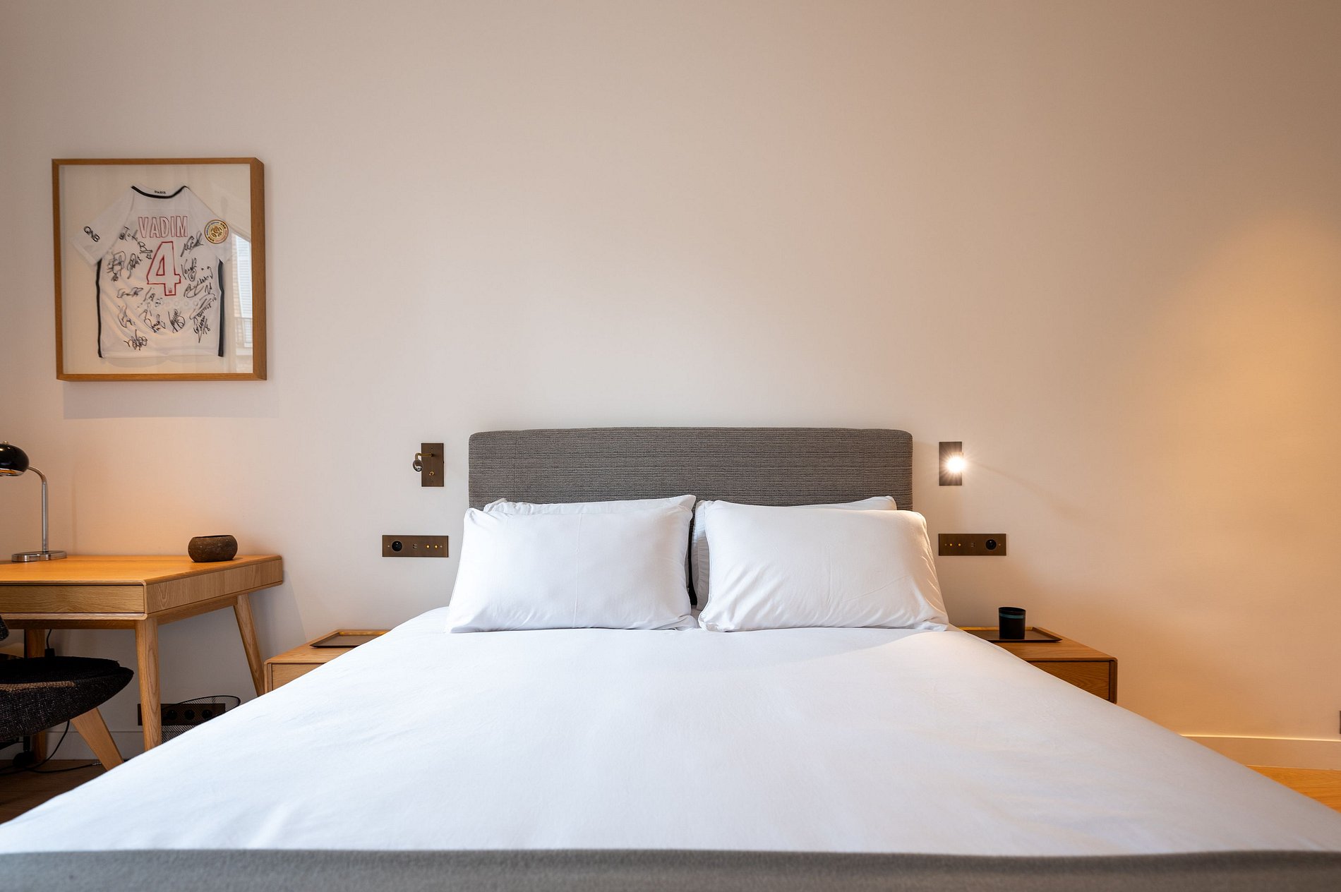L'appartement dispose de quatre chambres avec salle de bain attenante, chacune étant un sanctuaire de paix et de privacité. Ces chambres sont méticuleusement conçues pour offrir un confort et un luxe maximum, avec des finitions et des équipements de haute qualité. Chaque salle de bain attenante offre une expérience semblable à celle d'un spa, avec des installations élégantes et une ambiance sereine, assurant que les résidents peuvent se détendre et se régénérer dans leur propre retraite privée.