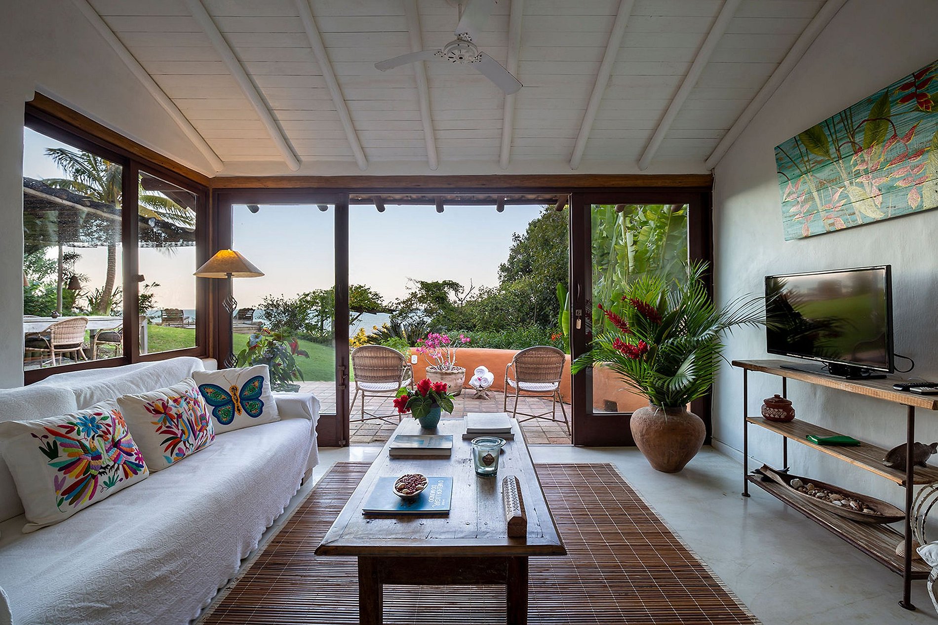 Les deux autres chambrent avec sale de bain disposent d'une terrasse avec accès direct au jardin tropical. Les espaces extérieurs et intérieurs sont grands ouverts sur l'océan, profitant de la douce brise marine. Décoré d´art et d´artisanat local, le charme de cette villa historique est unique. À quelques pas de là, vous pourrez vous détendre près de la piscine ou sur le deck la surplombant situé au bord colline, offrant une vue imprenable sur la plage et l'horizon bleu et vert.