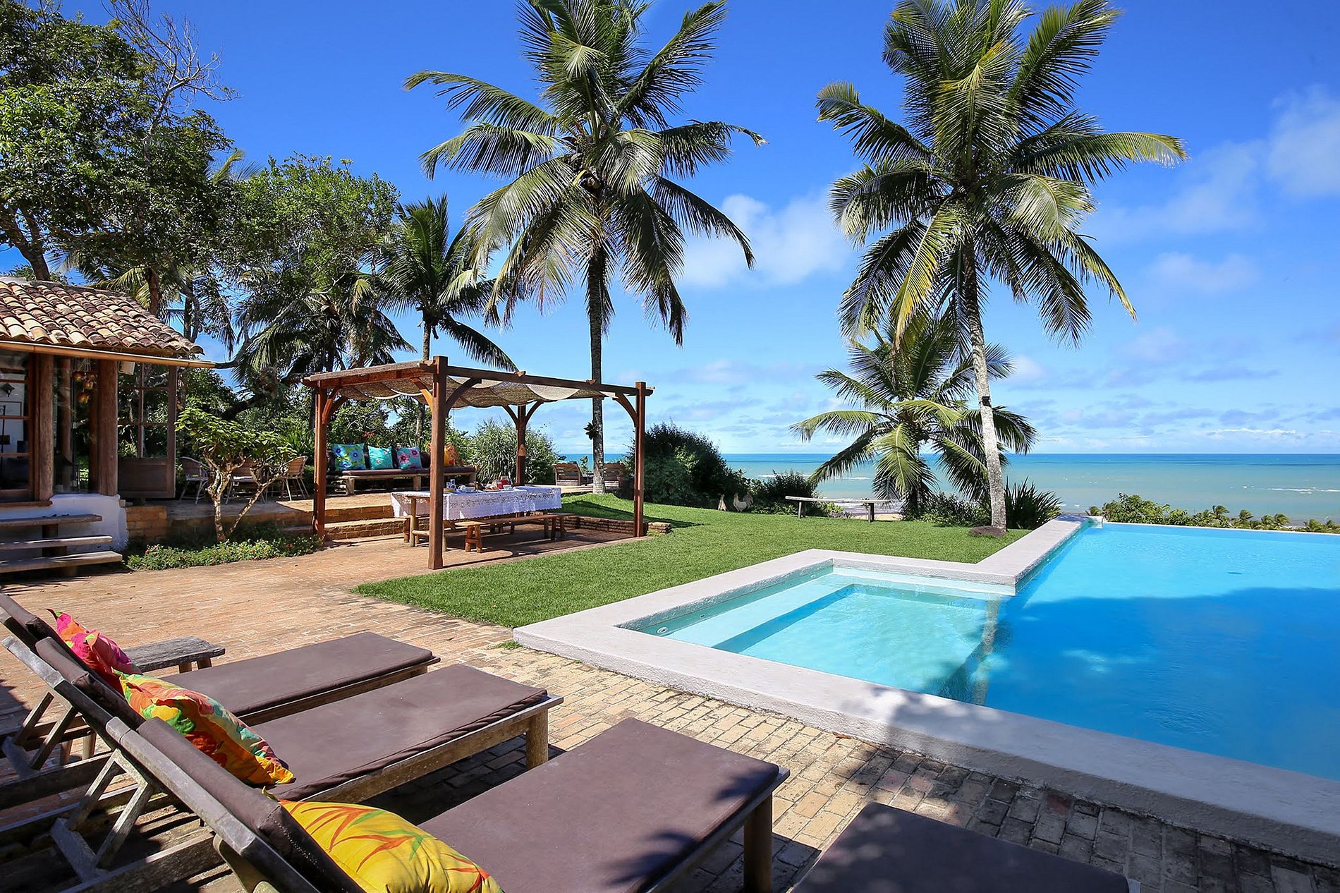 Profitez des journées ensoleillées de Trancoso en profitant de cette propriété confortable et pleine de charme, avec une vue imprenable sur la mer, au coeur d'un jardin luxuriant.