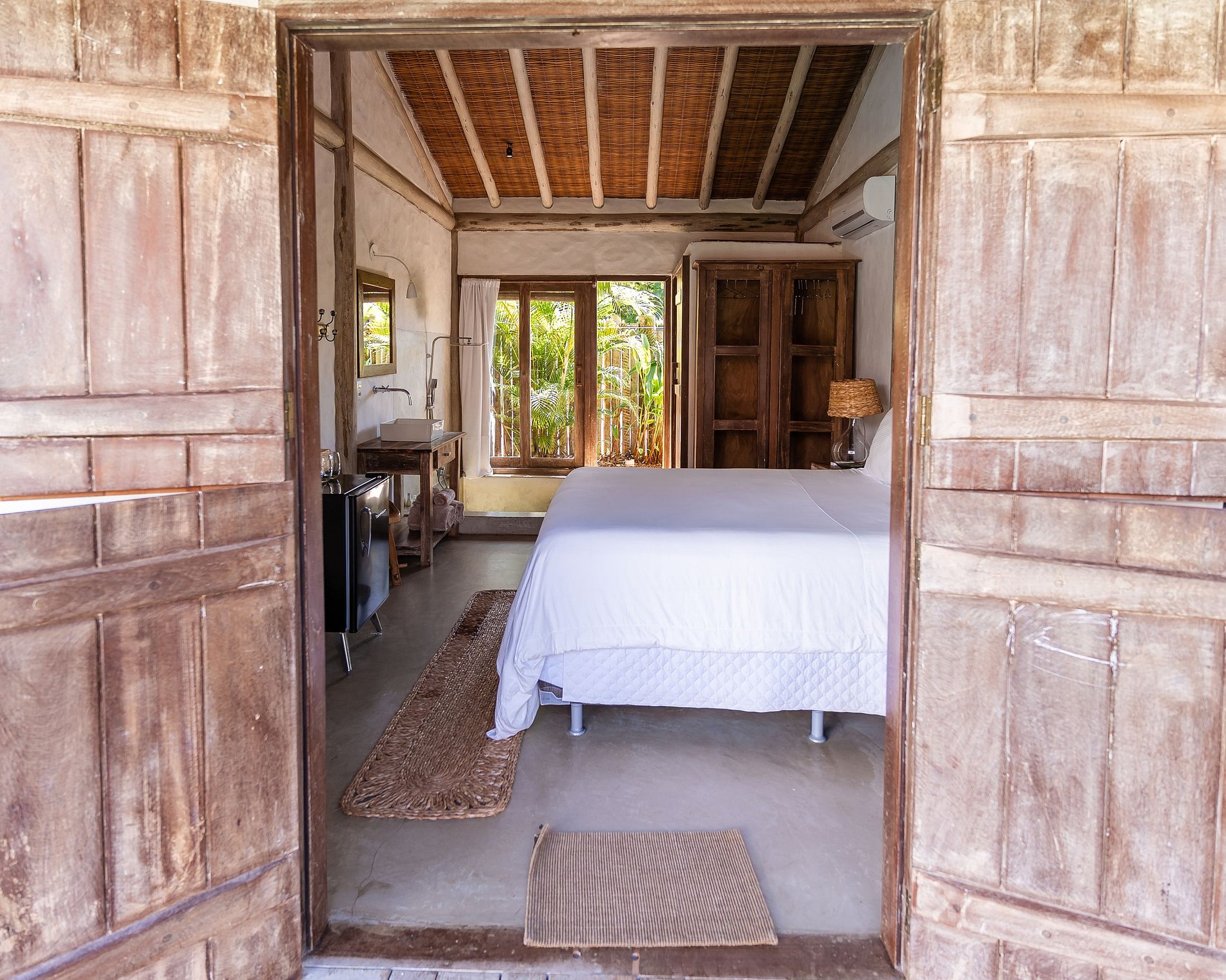 Avec un total de 8 suites luxueuses et située à seulement 180 mètres de la plage, cette villa promet de transformer votre séjour sur la plage paradisiaque de Bahia en une expérience inoubliable. Chaque chambre est une œuvre d'art en soi, variant en configuration et en style, garantissant une intimité et un confort exclusifs. De la Chambre Xohã, avec son bain à remous en bois dans un arbre centenaire ou de la Chambre Sol, avec sa mini piscine privée en pierre volcanique, à la Chambre Urataká, avec sa baignoire en ciment brûlé, tous les espaces ont été conçus pour enchanter.