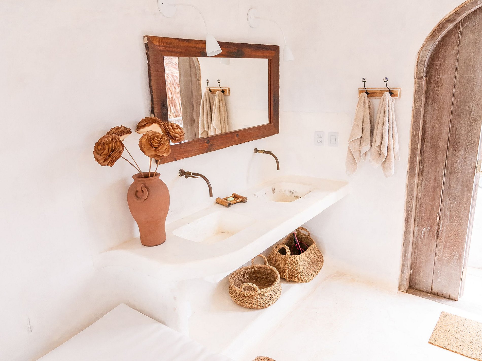 Avec un total de 8 suites luxueuses et située à seulement 180 mètres de la plage, cette villa promet de transformer votre séjour sur la plage paradisiaque de Bahia en une expérience inoubliable. Chaque chambre est une œuvre d'art en soi, variant en configuration et en style, garantissant une intimité et un confort exclusifs. De la Chambre Xohã, avec son bain à remous en bois dans un arbre centenaire ou de la Chambre Sol, avec sa mini piscine privée en pierre volcanique, à la Chambre Urataká, avec sa baignoire en ciment brûlé, tous les espaces ont été conçus pour enchanter.