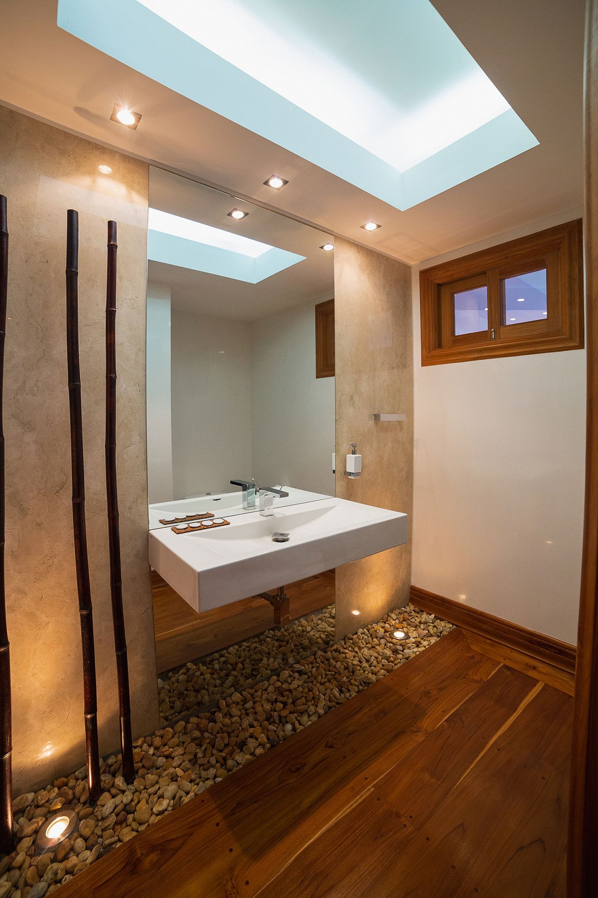 À l'extérieur, un kiosque attenant offre un espace supplémentaire pour se détendre, avec un salon, des hamacs, une salle à manger et une cuisine entièrement équipée, y compris un four en pierre pour profiter de dîners en plein air. De plus, une charmante cabane pour les visiteurs, avec chambre et salle de bain privée, offre un refuge confortable pour deux personnes.