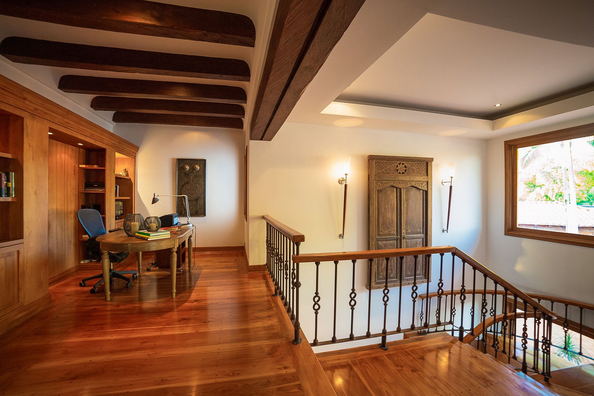 La cuisine est équipée de tout le nécessaire pour servir des déjeuners, des petits-déjeuners ou des dîners avec style et élégance, tandis qu'un bureau bien équipé et un bureau au deuxième étage offrent des espaces fonctionnels pour le travail ou le divertissement. Avec quatre chambres, chacune avec sa salle de bain privée, cette maison offre intimité et confort pour toute la famille. La suite principale, avec son grand balcon et son généreux dressing, est un sanctuaire de luxe et de tranquillité.