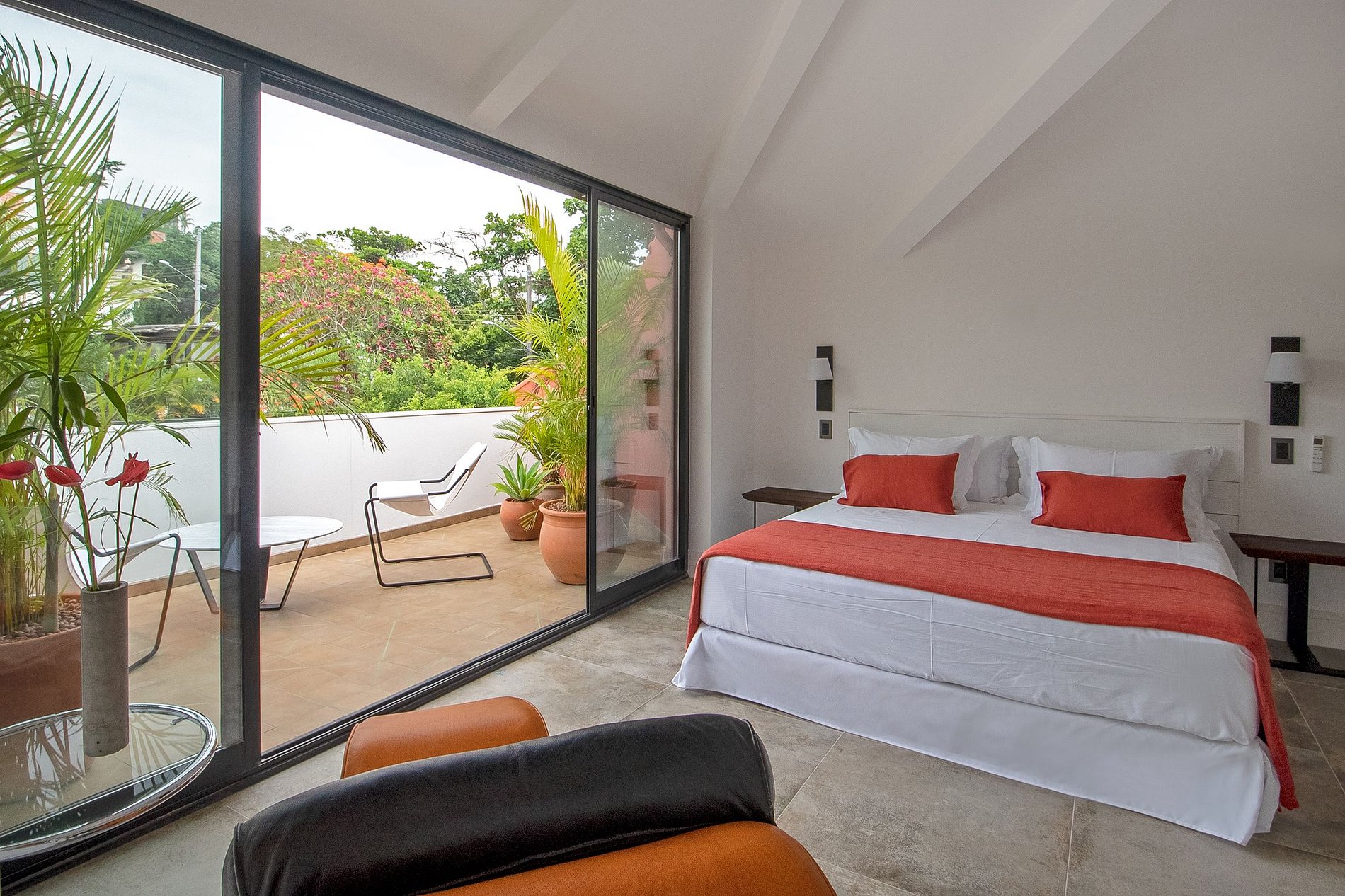 La préoccupation pour la préservation de la faune et flore locales a été au centre de l'aménagement de cette propriété idyllique transformée en hôtel de luxe. A l'extérieur, la piscine vous attend, entourée de magnifiques jardins offrant une vue imprenable sur le quartier de Santa Teresa. Vous pourrez également découvrir d’autres espaces de loisirs, comme un terrain de pétanque française.