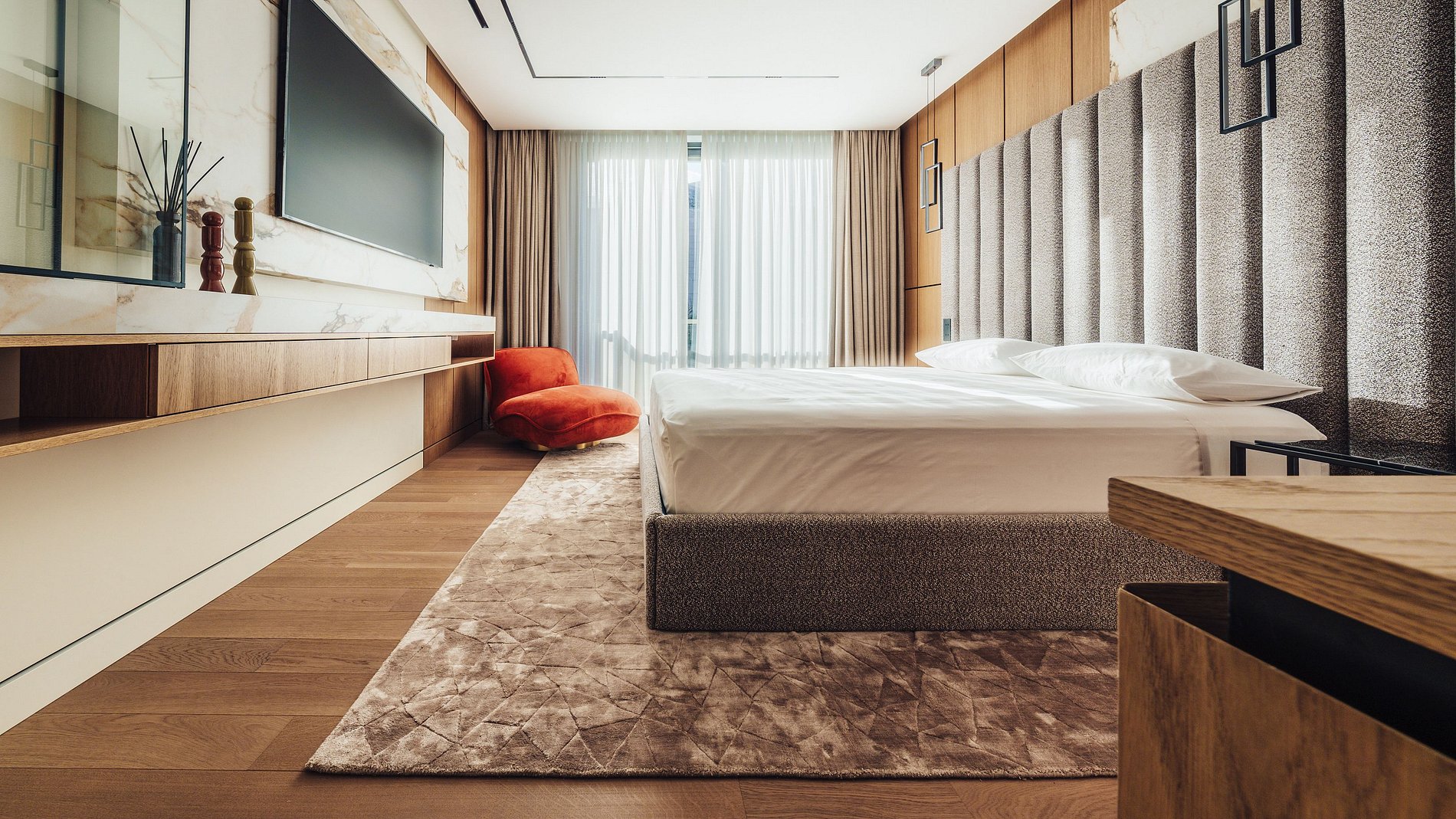 Le penthouse dispose de quatre chambres avec salle de bain attenante, chacune des plus hauts standards, offrant aux résidents un refuge luxueux et privé au sein de la ville animée. Les chambres sont conçues avec un œil attentif au confort et à l'élégance, présentant une literie luxueuse, un espace de rangement ample et des salles de bains somptueuses offrant une expérience semblable à celle d'un spa.