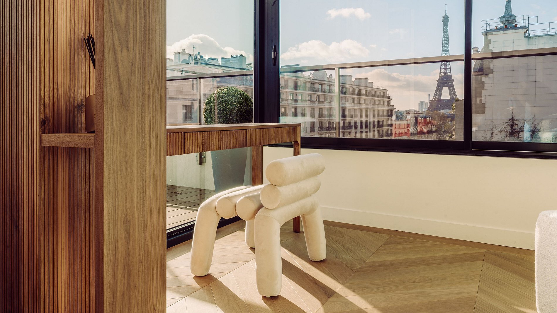 Les espaces de vie sont spacieux et conçus de manière réfléchie, offrant un cadre idéal pour la détente et le divertissement. De grandes fenêtres baignent non seulement l'intérieur de lumière naturelle, mais offrent également des vues à couper le souffle sur la ville, mélangeant la beauté de Paris avec le confort de la maison.
