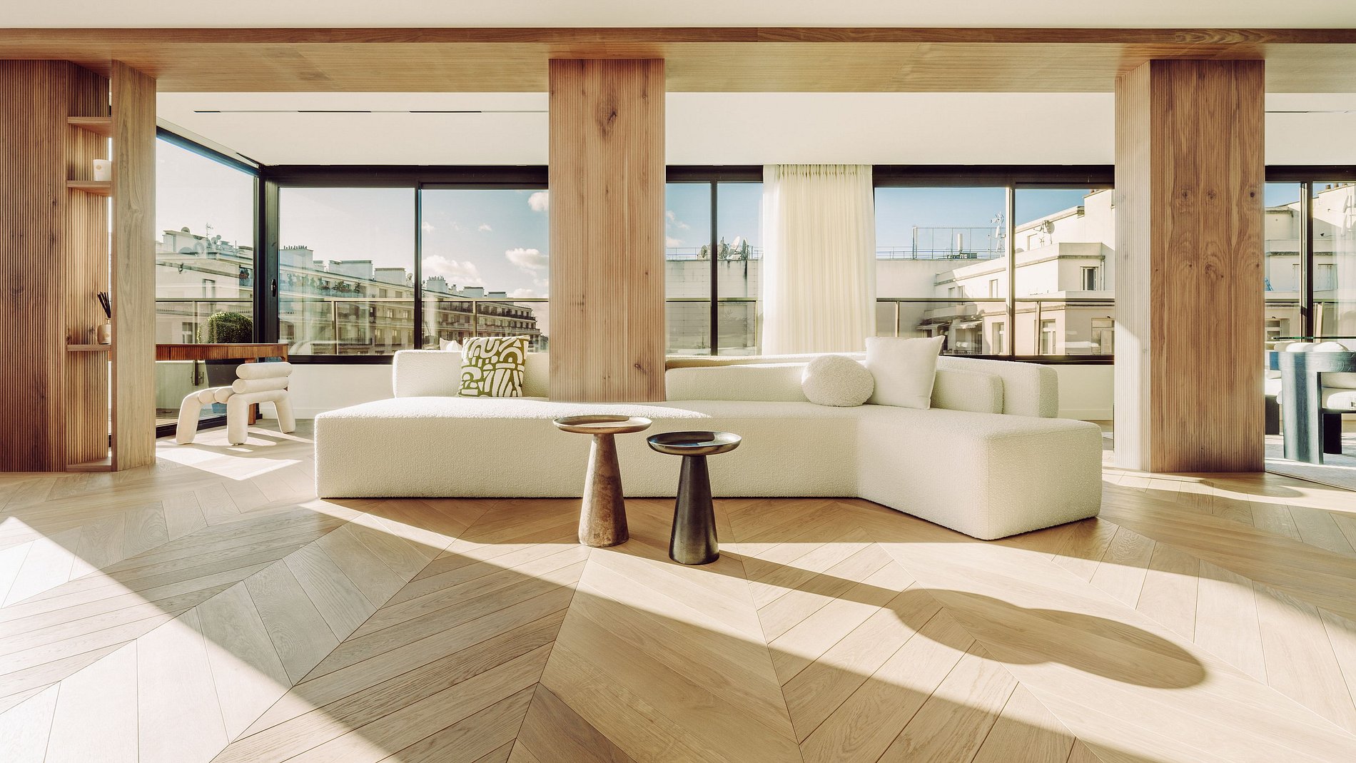 Les espaces de vie sont spacieux et conçus de manière réfléchie, offrant un cadre idéal pour la détente et le divertissement. De grandes fenêtres baignent non seulement l'intérieur de lumière naturelle, mais offrent également des vues à couper le souffle sur la ville, mélangeant la beauté de Paris avec le confort de la maison.