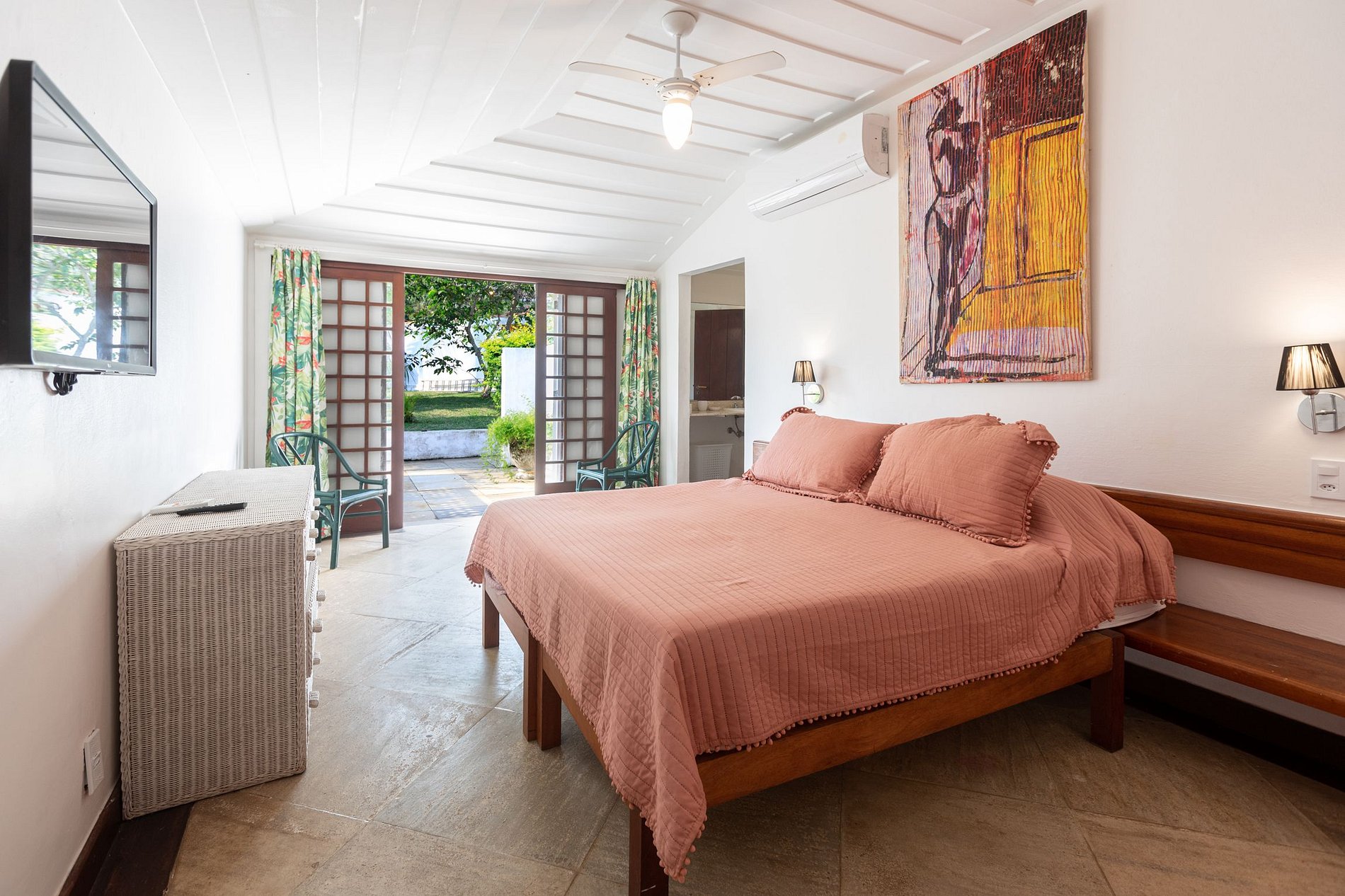 La villa dispose de 5 chambres spacieuses, 2 au premier étage et 3 au deuxième, très soigneusement décorées et meublées. Elles possèdent toutes leur salle de bain privative, la climatisation et un ventilateur au plafond.