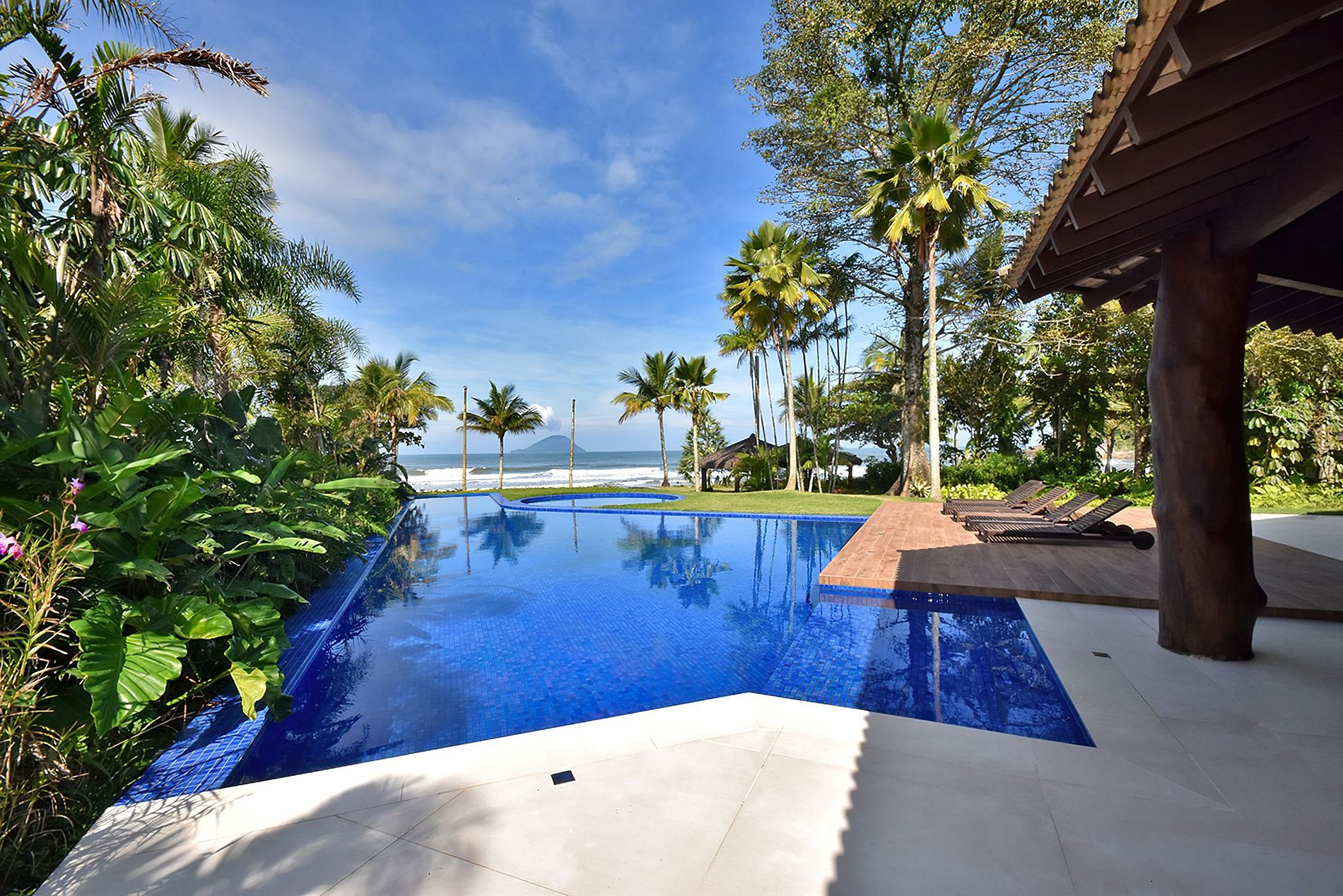 Une magnifique villa sur le sable et située sur la majestueuse et paisible Praia do Engenho, avec un projet architectural de Gil Dorati, avec une belle vue sur la mer, jardin avec piscine, barbecue et spa.