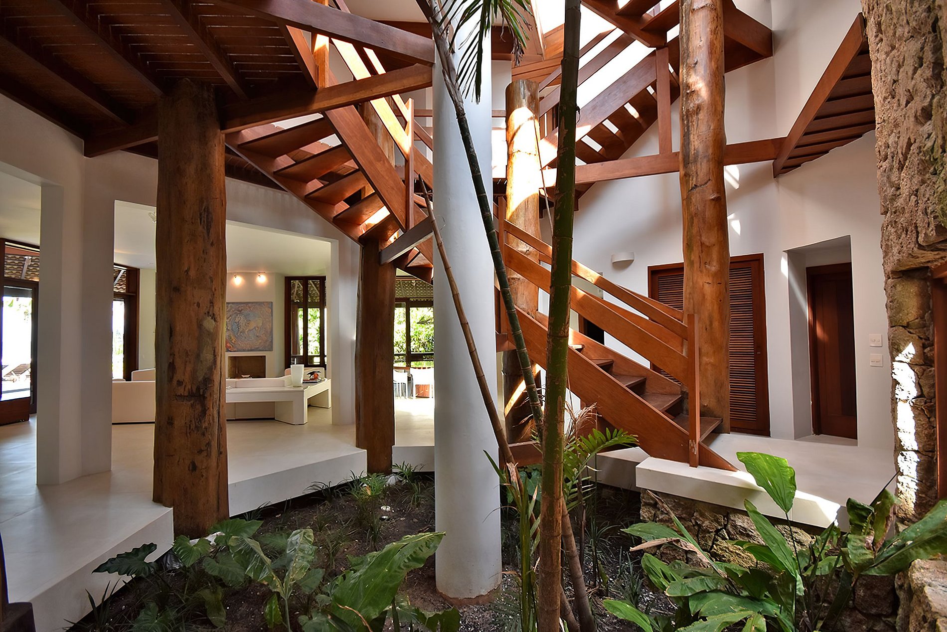 Une magnifique villa sur le sable et située sur la majestueuse et paisible Praia do Engenho, avec un projet architectural de Gil Dorati, avec une belle vue sur la mer, jardin avec piscine, barbecue et spa.