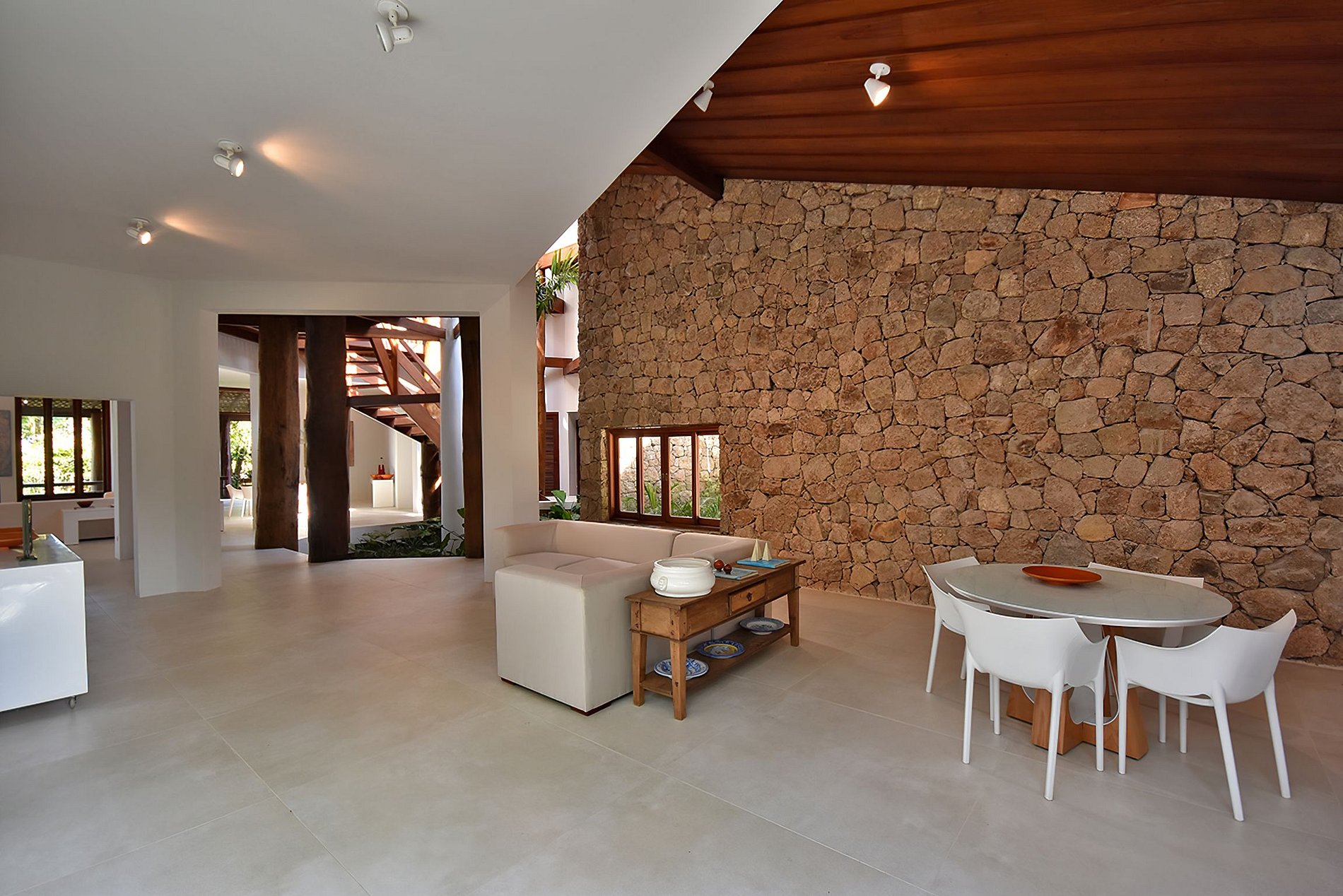 Une magnifique villa sur le sable et située sur la majestueuse et paisible Praia do Engenho, avec un projet architectural de Gil Dorati, avec une belle vue sur la mer, jardin avec piscine, barbecue et spa.
