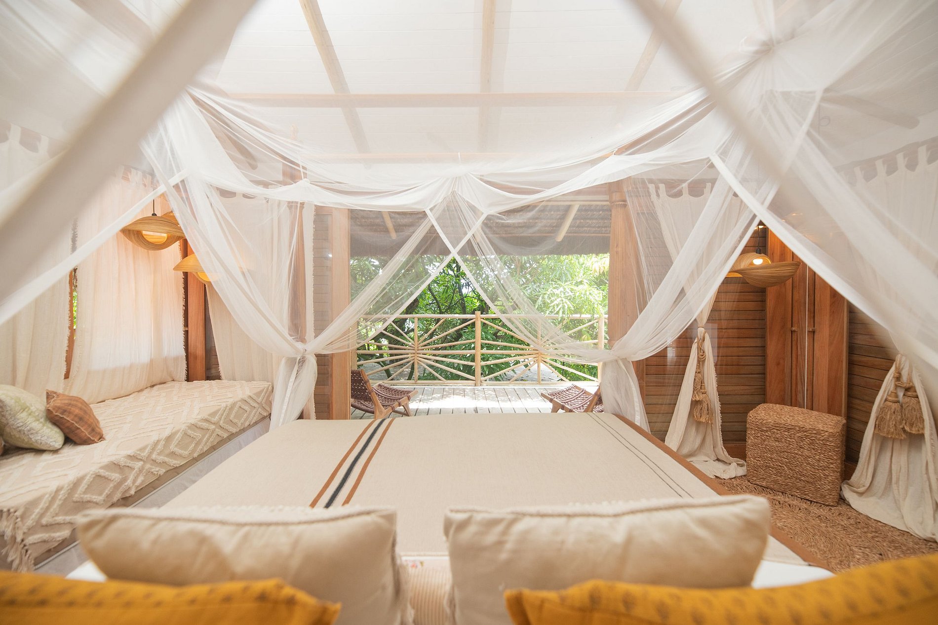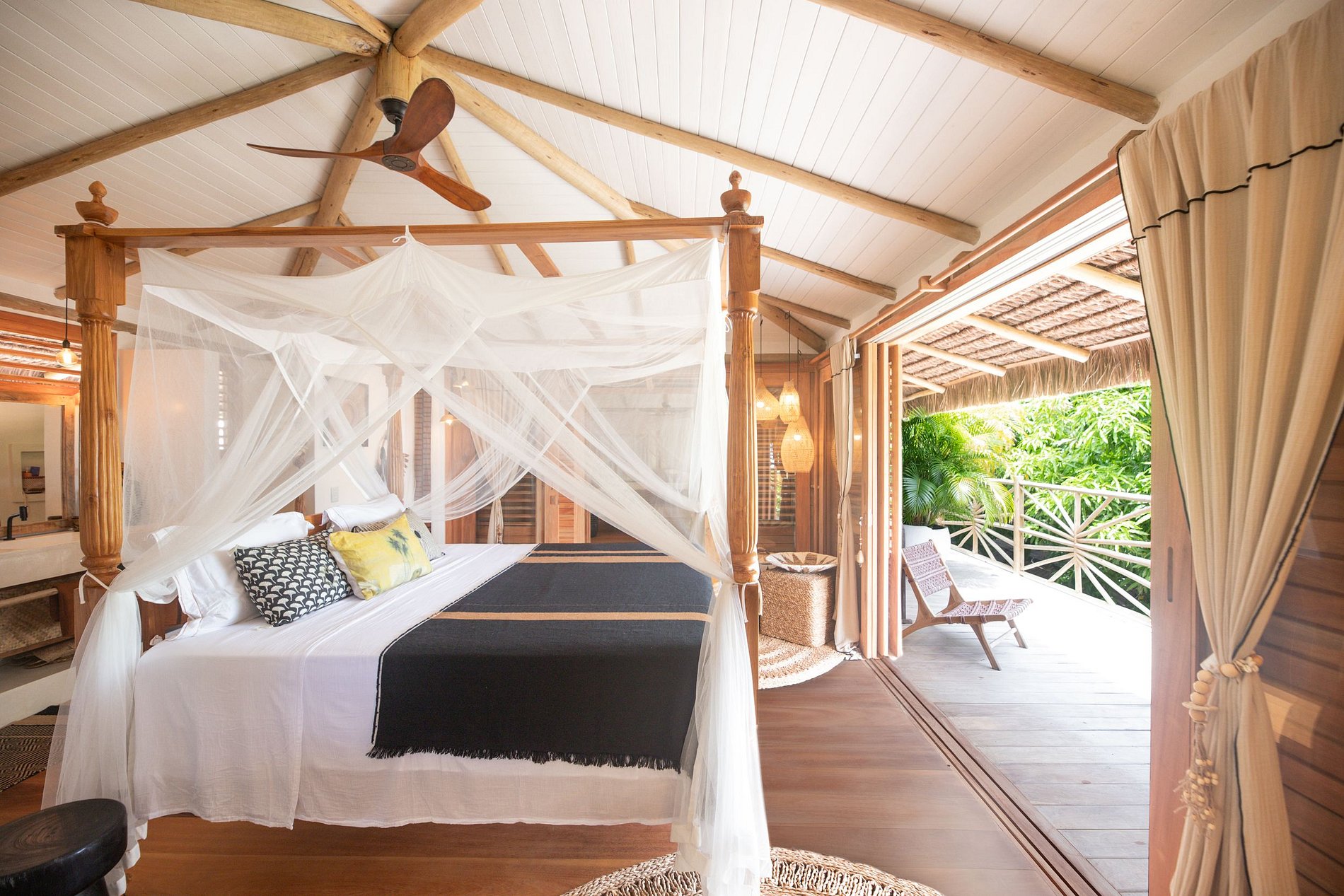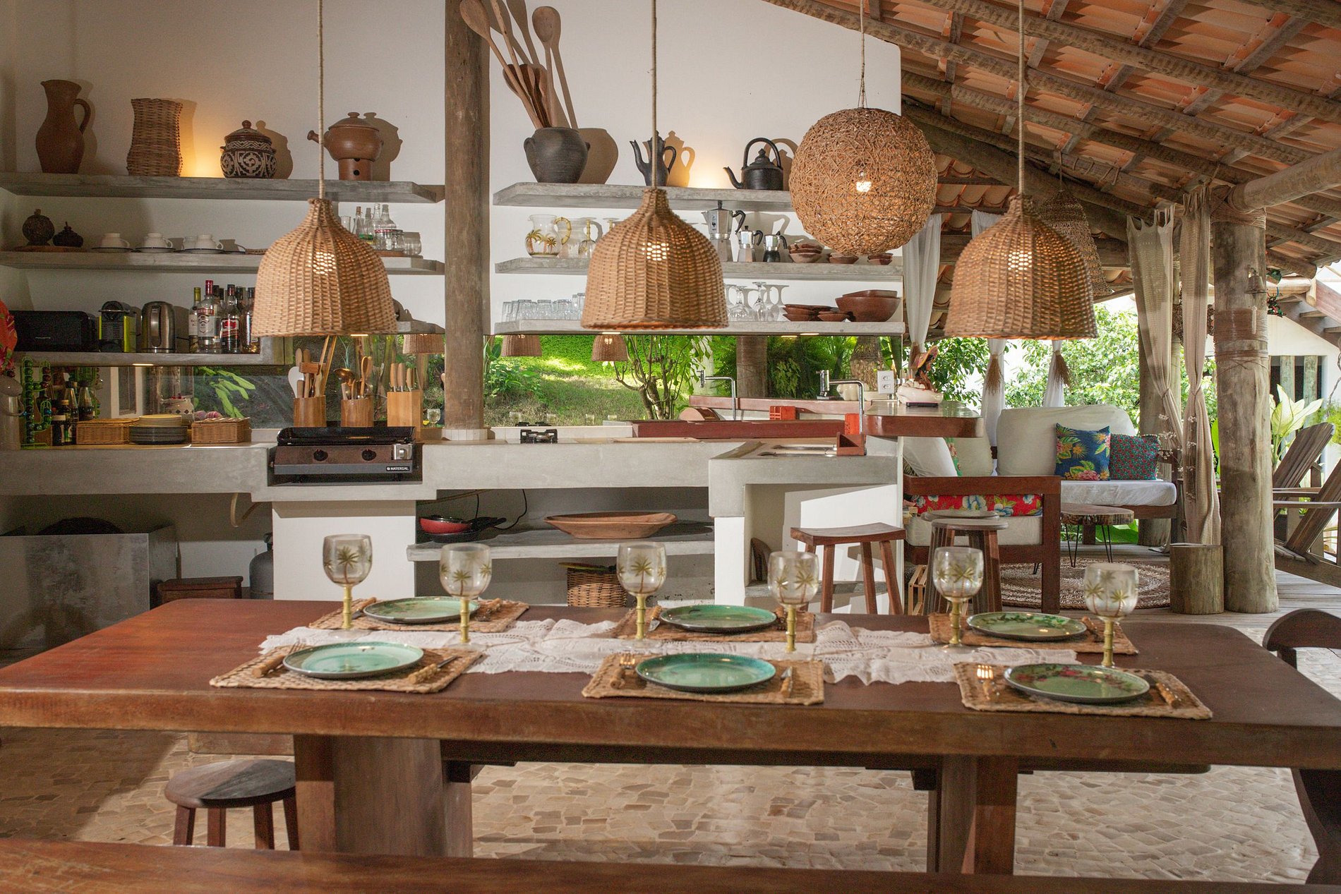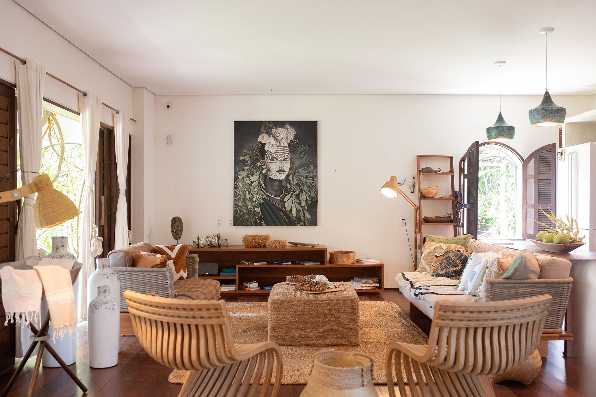Située à Praia de Pipa, Rio Grande do Norte, cette belle maison de location de vacances est un véritable refuge tropical. Située au cœur d'un jardin luxuriant de 2200 m², cette maison élégante et lumineuse offre 220 m² d'espace confortable, ainsi que 4 bungalows indépendants et une piscine.