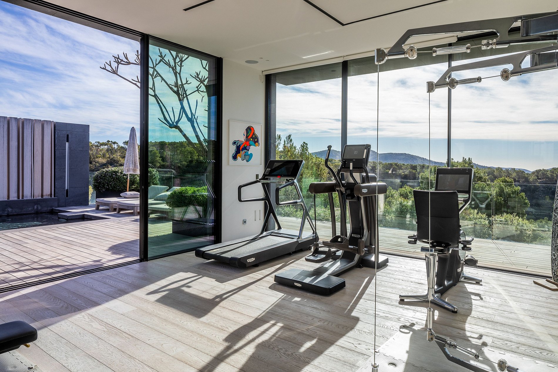 Un espace privé d’exception, organisé en cinq zones distinctes : • Chambre avec lit king-size • Salle de bain en suite avec baignoire, douches intérieure & extérieure, toilettes japonaises, double vasque • Salon privé • Bureau équipé avec bibliothèque • Dressing spacieux Deux terrasses privées : • Terrasse 1 : canapés de salon et table à manger extérieure • Terrasse 2 : bains de soleil et vue panoramique sur la piscine, la mer et la nature Équipements techniques : étage supérieur, système domotique iPad, coffre-fort, TV, climatisation, stores occultants.
