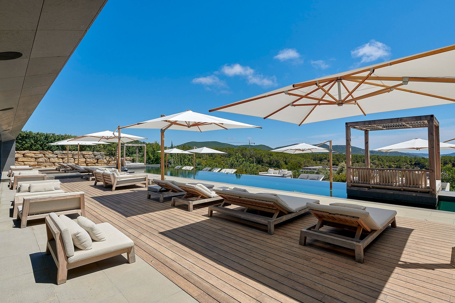 Un espace privé d’exception, organisé en cinq zones distinctes : • Chambre avec lit king-size • Salle de bain en suite avec baignoire, douches intérieure & extérieure, toilettes japonaises, double vasque • Salon privé • Bureau équipé avec bibliothèque • Dressing spacieux Deux terrasses privées : • Terrasse 1 : canapés de salon et table à manger extérieure • Terrasse 2 : bains de soleil et vue panoramique sur la piscine, la mer et la nature Équipements techniques : étage supérieur, système domotique iPad, coffre-fort, TV, climatisation, stores occultants.