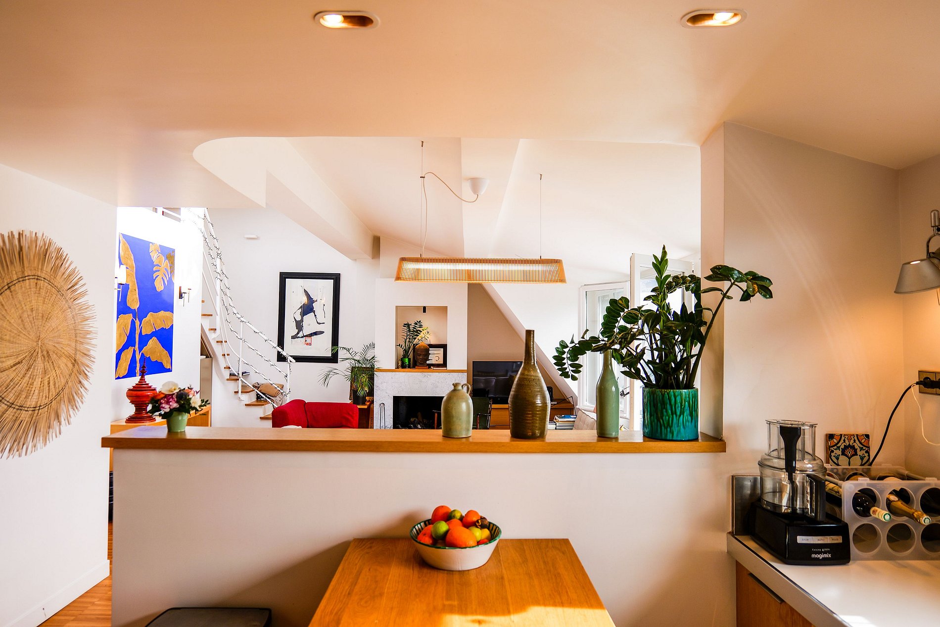 Niché dans le quartier des Batignolles, ce triplex de 120 m2 offre un cadre de vie exceptionnel sur les hauteurs de Paris. Réparti sur les 7ème, 8ème et 9ème étages, l'appartement dévoile des vues à couper le souffle sur les toits de la ville lumière et ses monuments emblématiques.