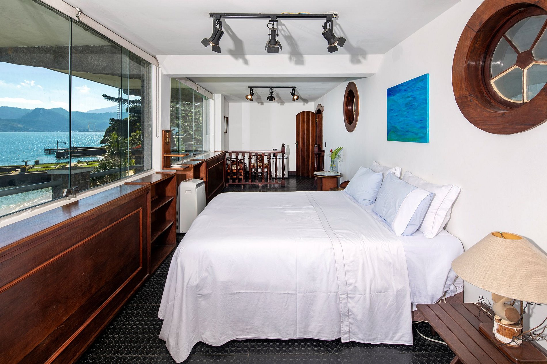 Dotée d'une des plus belles vues d'Angra dos Reis, cette villa paradisiaque dispose de 8 suites pouvant accueillir jusqu'à 26 personnes; belle jetée privée avec héliport, fontaine, aquariums, piscine avec jacuzzi, hammam, barbecue avec four et poêle à bois, salon avec cheminée, WiFi et salle de cinéma. Chaque soir, profitez d'un magnifique coucher de soleil !